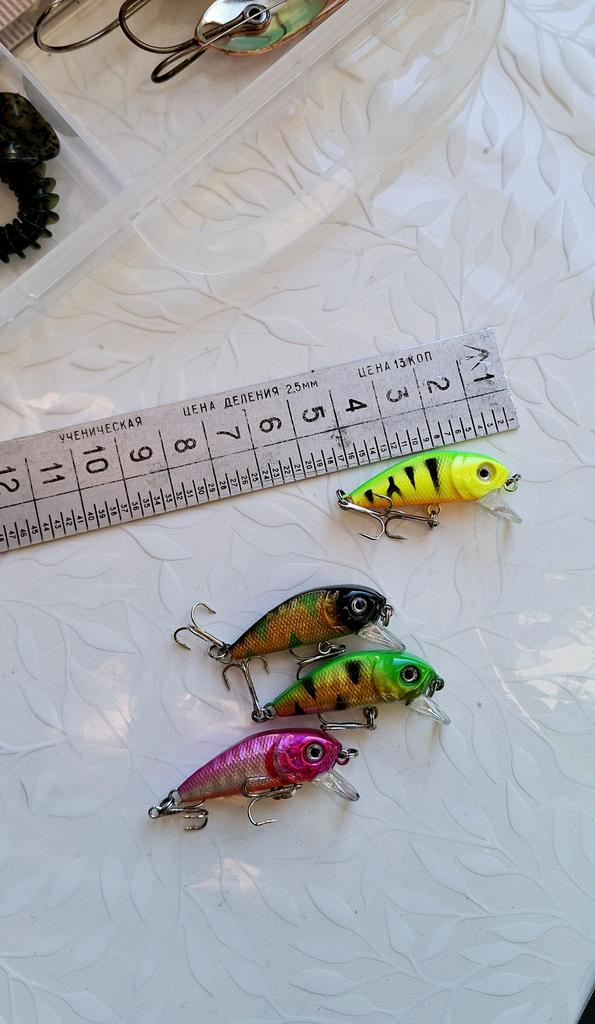 Джум, ты просто сделал мой день сегодня 😁😁😁😁😁 такого я ещё не видел😁😁😁😁😁😁 заказ пришёл на почту, по России не отлеживался, но размер этих воблеров меня просто убил 😁😁😁😁😁 не знаю что они будут ловить, мне кажется их и рыба не заметит в воде, покрашены они так себе, цвета плывут, не яркие, более тусклый цвет, но весной посмотрим что они из себя представляют! Безумно маленькие.