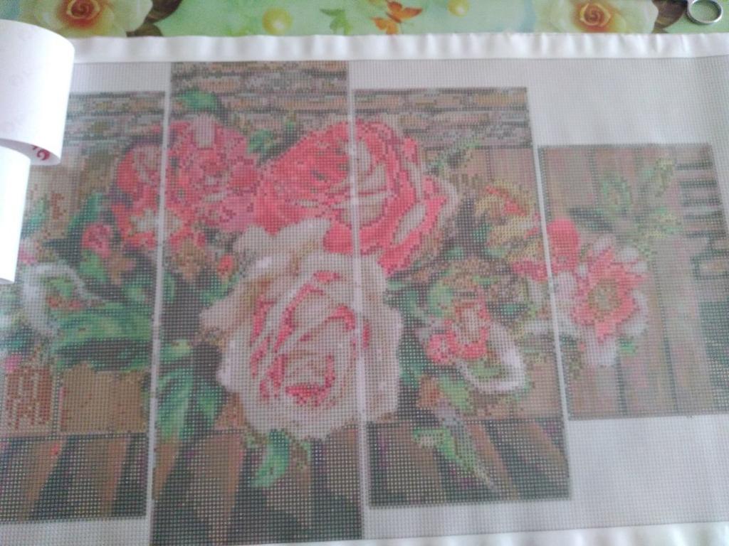 Доставка отличная все целое не помятая. Накрученая на валик,что очень радует.Алмазики- стразики круглые в зип пакетиках.схема чёткая все значки хорошо пропечатаны.