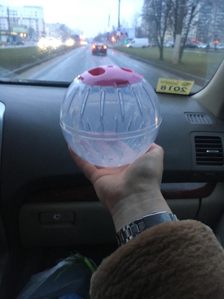 Заказ шёл в Витебск долго 2 мес но это мелочи Сам шар менее хрупкий сделан из более твёрдой пластмассы не то что цветные шары они очень колкие По диаметру маленький 12 мл примерно если хомик растянется то будет чуть больше пол шара занимать это вредит позвоночник грызуна так как и маленькое колесо беговое оно должно быть большим Если колесо или шар маленький то может произойти травма позвонков что плохо скажется на вашем питомце Вот сам шар использовала только 2 раза на пару минут решила попробовать и поняла что ему там катастрофически мало места и это скажется на его позвонках не очень благоприятно так что шар не использую по назначению Даже и не знаю зачем я его заказывала Ну да если он был большой то можно было и прогулки устраивать а так увы этого я точно делать не буду Вот у меня джунгарик а если Сирийский хомячок то это я не знаю как он там конечно поместится но кататься ему там будет во вред это точно Сам товар не плохой но маленький если бы я его в живую увидела то покупать бы не стала ,(