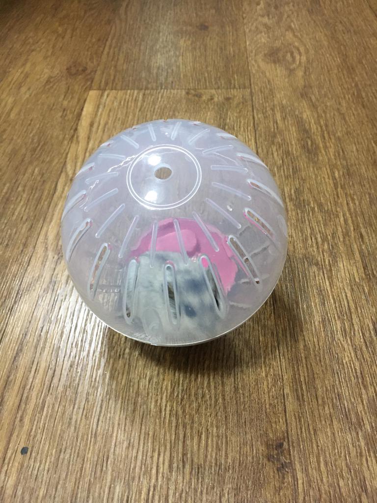 Хороший шарик для хомячка, может в нем бегать по дому и не нужно бояться что он куда-то залезет или на него наступят. У меня сириец, как раз самый большой шар подошёл по размеру, но хомяк ещё не разобрался что с ним делать, пока только грыз и возмущался, но думаю это дело привычки. Сам шар плотный и хорошо закрывается, упакован был хорошо и пришел целый. Заказала 4.02 пришел 1.04. Всем довольна, спасибо продавцу и джуму 🥰