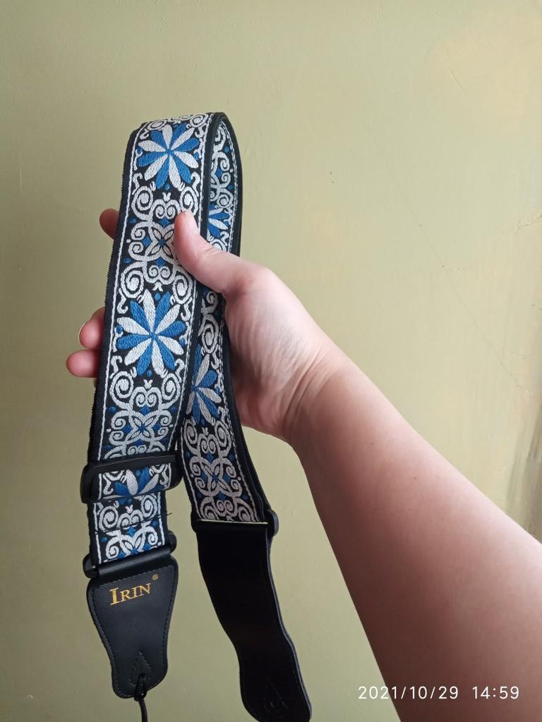 Ремень выглядит прочным, тесьма качественная, швы аккуратные, наконечники из дерматина, крепления - пластик. Для тяжёлой гитары не подойдёт. Но я брала на обычную.Выглядит нарядно.