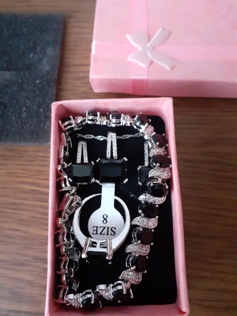 Получила комплект ювелирных украшений состоящий из 5 единиц, качество изделия просто супер, стоит проба 925 Браслетик сделан на полное запястье Продавцу ставлю 10++++ за качество и за добросовестно упакованный комплект Всем желающим приобрести комплект ювелирных украшений однозначно рекомендую и украшение и продавца, не пожалеете Очень жаль что сияние камушков не передать по фото По своим возможностям старалась по больше и качественно сделать фото для отзыва если кто заинтересуется приобрести украшение