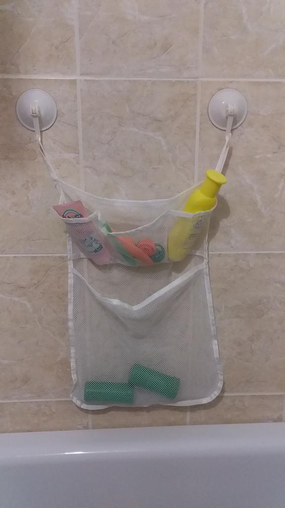 Сетка для ванной. Всегда мешали бутылочки с шампунем или гелем для душа, которые стаяли на краю ванной. А особенно разные мелочи для ребёнка. Теперь можно их поместить в сетку! Сетка хорошая, срочная, без дефектов. Особенно понравилось крепление! Не отваливаются, и можно использовать как дополнительный крючок для мочалки. Довольна полностью покупкой! Спасибо Joom!!!