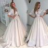 Атласные свадебные платья цвета шампанского с кружевным верхом, свадебное платье трапециевидной формы с половиной рукавов — купить товар онлайн с бесплатной доставкой до всему миру!