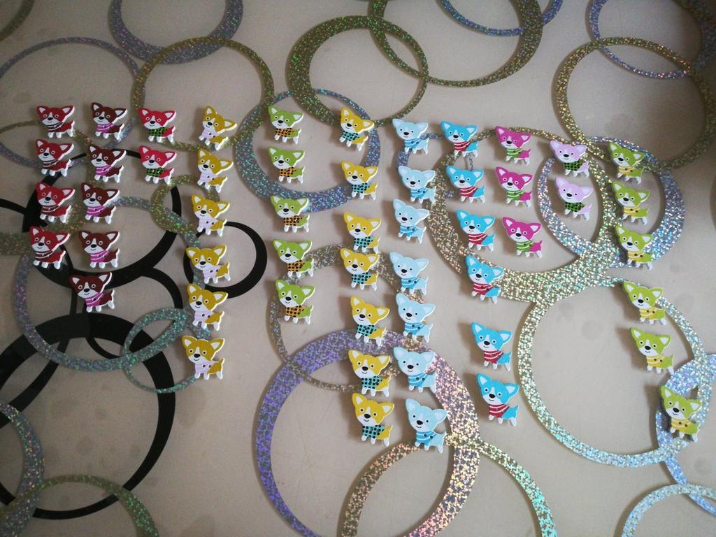 Набор ярких мультяшных пуговиц из дерева. 50 шт