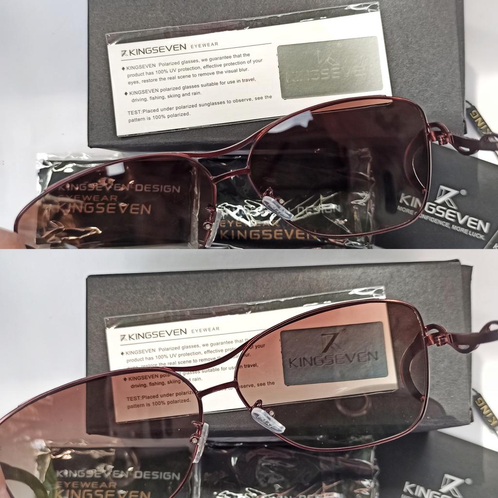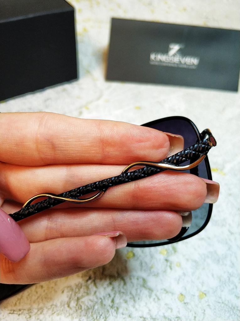 Классные поляризационные очки! Я всегда носила обычные солнцезащитные очки не задумываясь об их качестве, главным для меня была форма оправы и то, как она подходит моей форме лица. Но теперь я точно могу сказать, что обычные солнцезащитные очки для меня отходят на второй план, благодаря знакомству с брендом KINGSEVEN я знаю, что самое главное в очках - это качество линз! Доставка заняла три недели до почтового отделения. Очки упакованы супер надёжно! Почтовая коробка, внутри слой поролона, красивая фирменная подарочная коробка и плотный футляр, в комплекте идёт также, тканевый чехол, тряпочка для протирки линз и карточка для проверки поляризации, а ещё в подарок продавец положил силиконовый браслет. При распаковке очков сразу чувствуется, что это бренд! Продавец позаботился обо всём, за это хочу выразить отдельную благодарность, всегда приятно получать такие качественные товары, да ещё и в такой богатой комплектации! Кстати, очки смело можно покупать на подарок, потому что качество чувствуется сразу и посылка пришла в идеальном состоянии! Итак, немного о свойствах очков: поляризационные женские солнцезащитные очки, градиентные линзы UV400, регулируемые носоупоры, дужки необычного дизайна. Я провела тест на поляризацию, смотрите фото ниже! Поляризационные очки защищают глаза от ослепляющих бликов, которые представляют собой отраженный от различных поверхностей свет. Не путайте поляризационный фильтр в солнцезащитных очках, и фильтр защищающий глаза от ультрафиолетового излучения (обязательно должен присутствовать во всех солнцезащитных очках, а иначе зачем они нужны). Самый простой способ проверить очки: Взять поляризованные очки, посмотреть на любой жидкокристаллический монитор (дисплей сотового телефона или монитор платёжного терминала) и повернуть очки на 90 градусов относительно монитора. Если линзы очков имеют фильтр, то изображение потемнеет или станет совсем тёмным. Если очки простые, то ничего не изменится. Я же провела тест на карточке, которая шла в комплекте с очками, результат очевиден на фото, кстати, тест с ЖК монитором также успешно пройден, поэтому смело заявляю, что это Палароид! Я в восторге от этой покупки! Для меня стало приятной неожиданностью то, что в солнцезащитных очках картинка может восприниматься настолько красочной и контрастной, не меняя свой реальный цвет и оттенок! Однозначно рекомендую к покупке, в магазине 4 варианта расцветки оправы и линз 👍