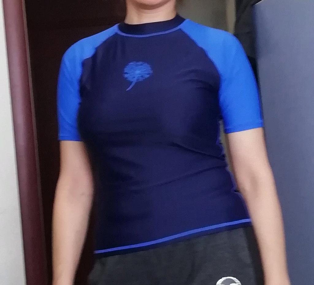 Футболка для сёрфинга. На параметры 96-78-98 : и рост 160 см размер М сел хорошо. Ткань к телу и на ощупь приятная. Материал нейлон, спандекс, полиэстр, хорошо тянется. Смотрится неплохо. Неприятный запах отсутствовал. Швы и строчки ровные. Пошив аккуратный. Вещь качественная! Бирки и этикетки присутствовали. Доставка до Республики Бурятия заняла две недели. Трек отслеживался.