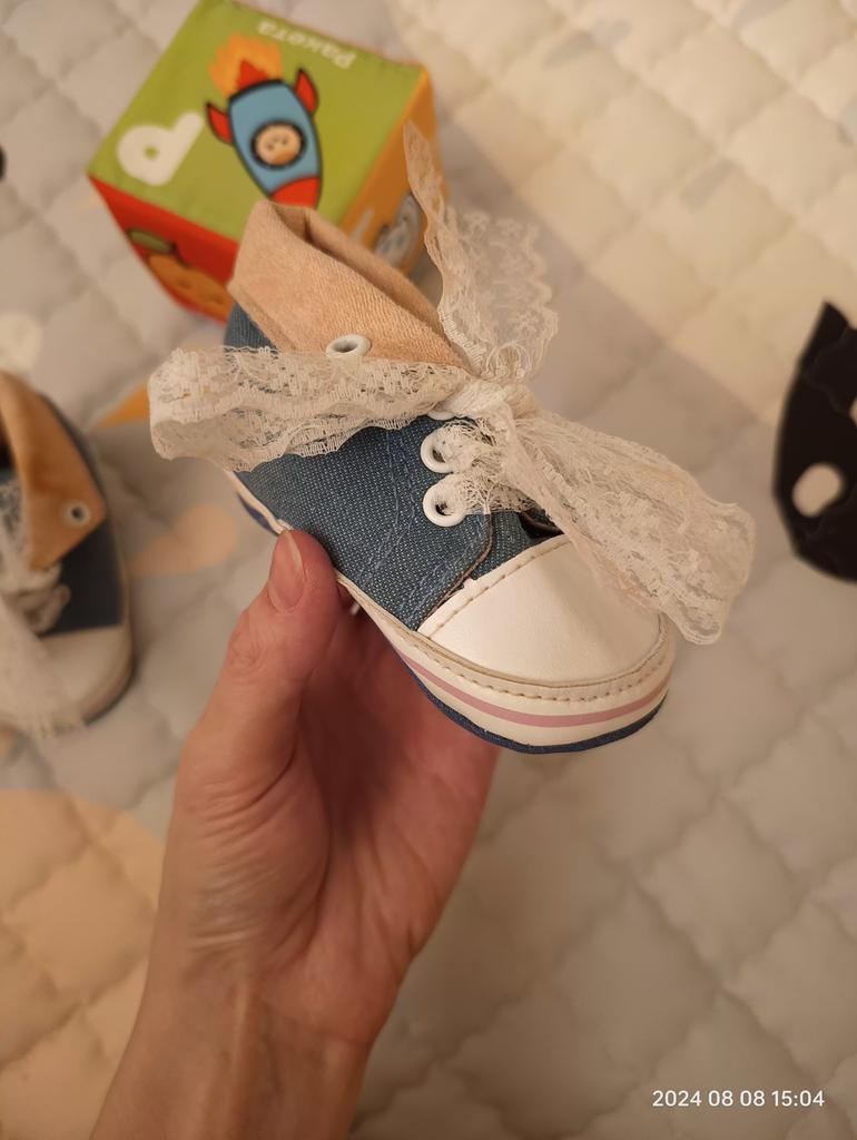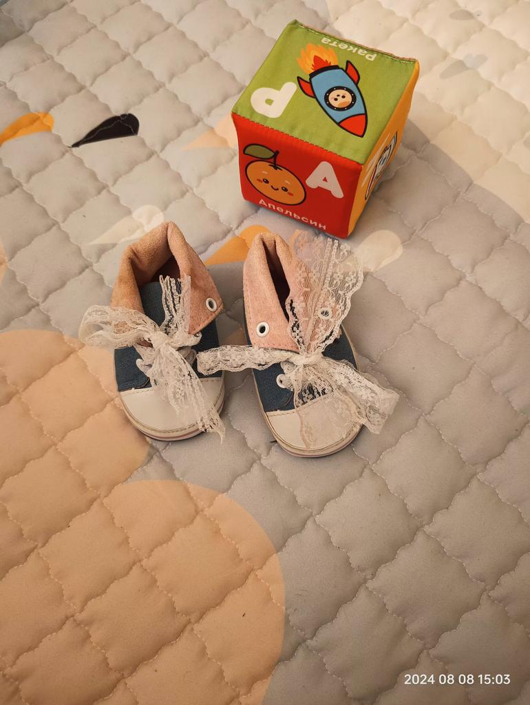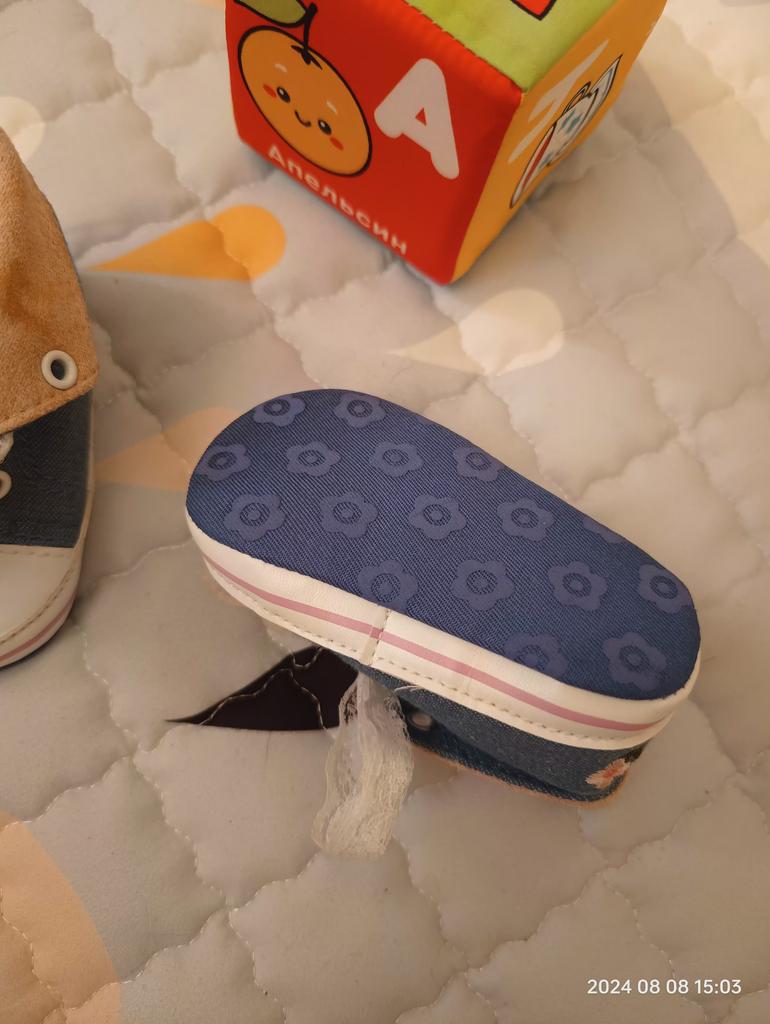 Кеды для девочки) От 0-6м. Бессмысленная покупка 😵💫 даже если ребёнок в 6м ходит... Часто одевать всё равно не получится + Для формирования стопы явно нужны другие, а это как тряпочки, сшиты не очень ровно. Но тем не менее, носить можно. + очень маломерят, размер 0-6м. Подойдёт до 3м Красивые конечно)) но лучше их брать, если ребёнок по старше, с года хотя бы. Но вот так 431₽ в одно место 😆 У нас они для игр... Дочка по младше была, просто играла ими... 😹