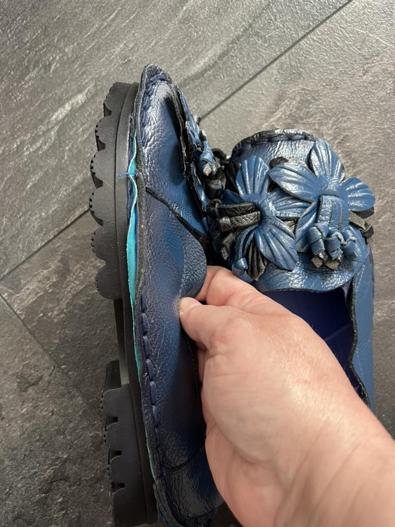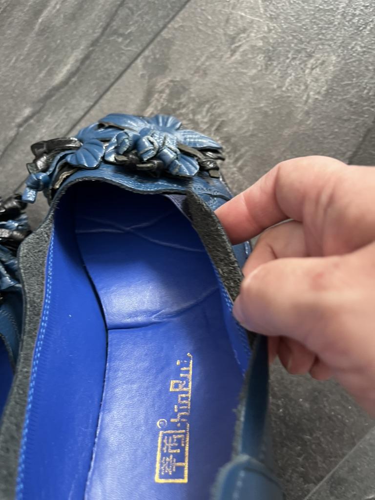 Получила туфли 🥿 Взяла на свою ногу 24,5 см 39 размер и хорошо сели в длину. По ширине колодки: спереди где пальцы, узковаты, а пятка болтается… не знаю как будут носиться. Они не на широкую ногу. Кожаный верх, стелька не кожаная. Туфли были упакованы в простой пакет, без держателя формы, и настолько поломались в дороге, что эти заломы на коже не знаю выровняются ли, просто складки образовались, видно на фото пяточки. Кроме того, на одном из туфель неаккуратно обрезан какой-то внутренний слой, он голубого цвета, пока не знаю как его удалить, ножницы не берут, это что-то из подошвы очень плотный материал… Стельки почему-то все как поломанные, стопой даже слышно эти грубые складки… Дизайн очень интересный и соответствует фото продавца. Цветочки очень аккуратные и красивые. Ну как-то так, вот как есть. Дополняю через пару месяцев: туфли при ношении приняли форму ноги. Недостатки исправлены и я ношу эти туфли с удовольствием, очень удобные даже летом в жару, жду осень :) Правда, туфли оказались очень удачными! 🩷🩷🩷 Рекомендую!!! Всем удачных покупок и весеннего настроения! Ловите свежие промокоды на скидку 10%: 🔥 КОФЕ 🔥КОМНАТА 🔥АНКАРА