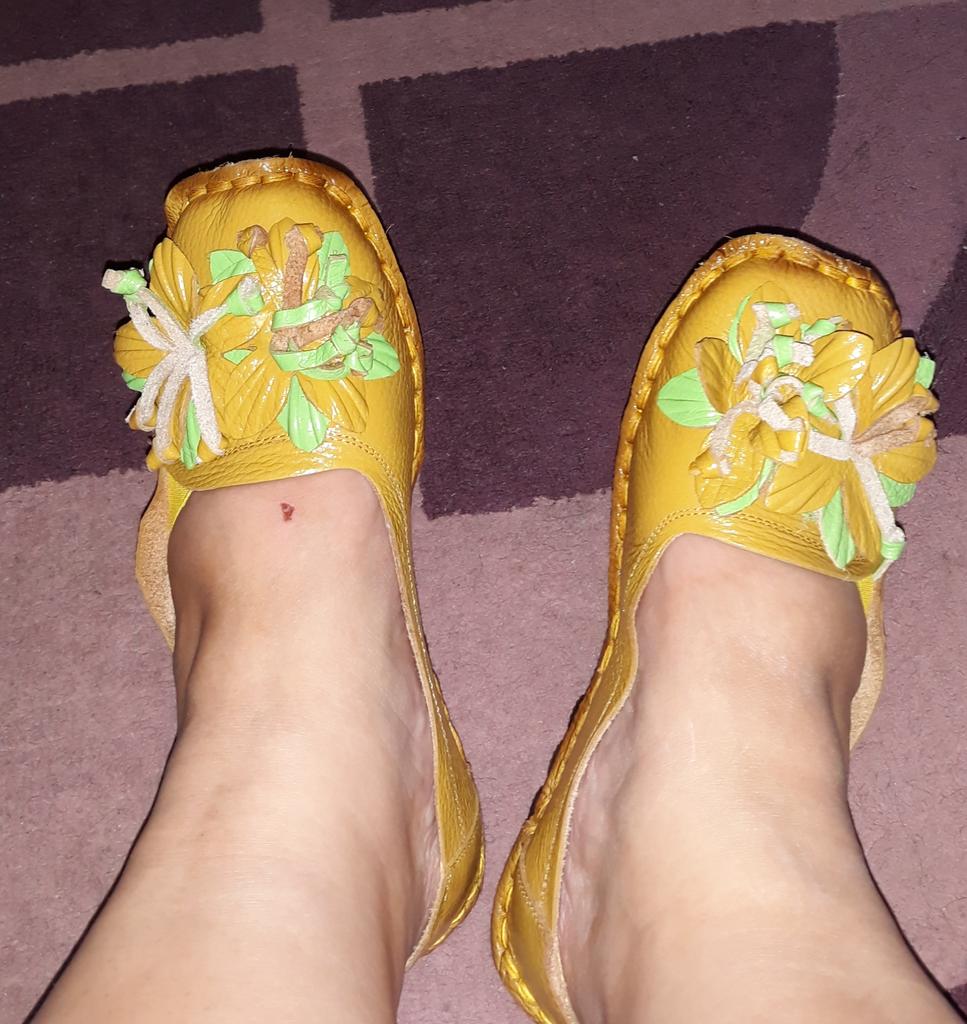 Туфельки замечательные. Красивые, необычные и очень удобные. Такой удобной обуви у нас я просто не всречала, китайская колодка самая лучшая. Покупаю уже 4 пару ( не удержалась, очень уж цена была ,,вкусная", раньше намного дороже покупала). Этим летом, когда дождливой погоды было достатично, практически не вылезала из них. Всем хороши. Но есть одно но... они проклеины, а не прошиты. Поэтому по истечении определённого времени ( а у меня ещё и косточки) начинают рваться у основания. Попробовала заклеить, но как-то не очень получилось. Но я даже это готова перетерпеть, настолько они мне нравятся. Одни из самых любимых китайских пар обуви! Спасибо за товар, побольше такого замечательного товара!