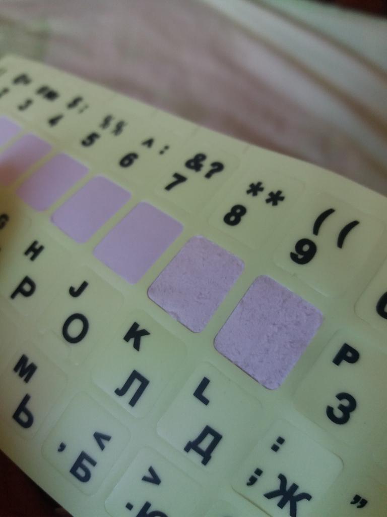 Доставка неделя до Костромы. Плохо отклеиваются от подложки, но зато на клаву прилипла норм. Светится в темноте, но надо чтобы зарядились светом. За эти деньги и у кого уже буквы стёрлись можно заказывать смело. Наклейки не на все кнопки. Дополняю, хватило наклеек на 1.5 недели, после чего начали расслаиваться и стираться. Плюнул и заказал новую клаву с подсветкой Дефендер, теперь не нарадуюсь. Цена вопроса 1300 деревянных. Не тратьте деньги на эти наклейки.