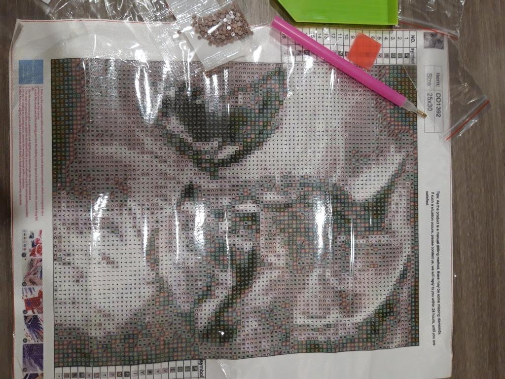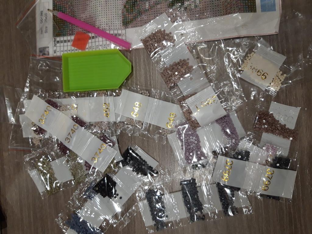 Заказ в Беларусь пришел за месяц, отслеживался частично. Упакован в узкий пакет, поэтому немного помялся. Но не сильно, так что расправится. Вложено несколько запасных пакетов, лоток, кусок клея и палочка для наклейки, все хорошо. Стразов много, выкладка полная, продавца рекомендую. Закончила работу, стразов хватило, осталось много. Фото прилагаю.