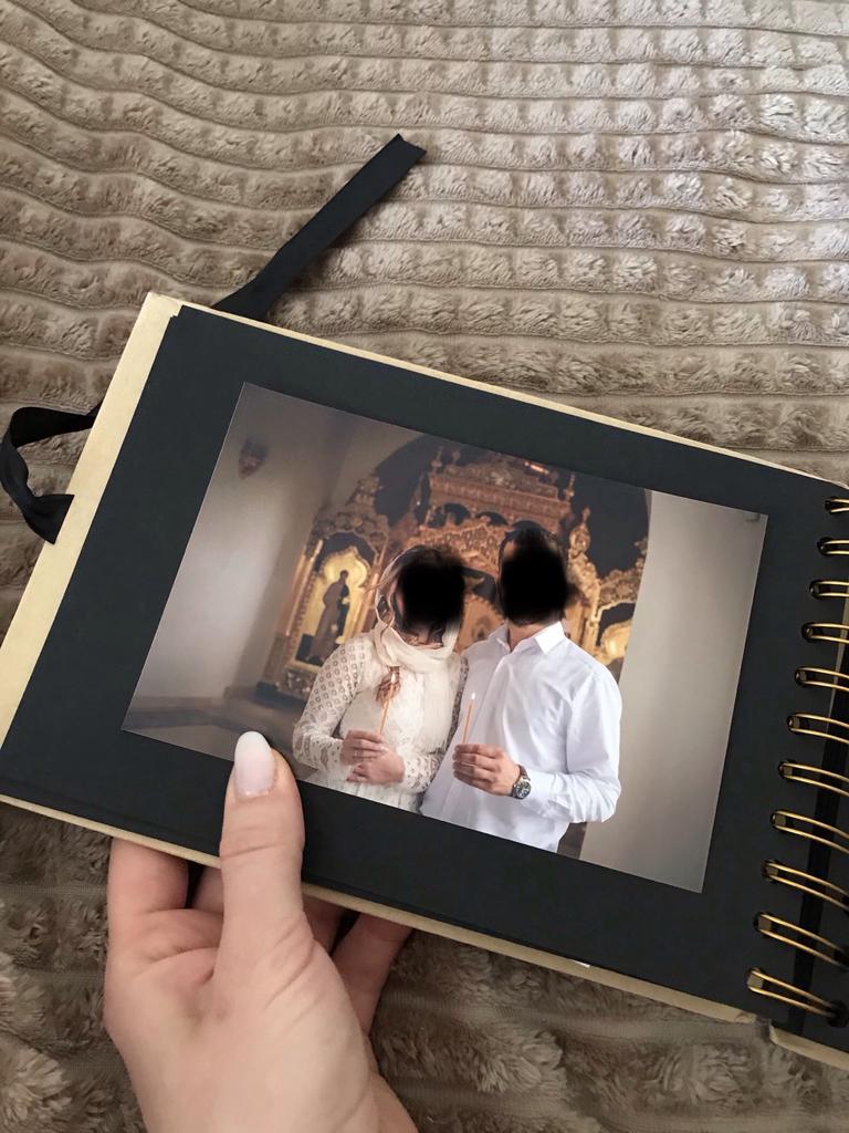 Долго не могла решить какие фото поместить в альбом. Он не стандартный и какой-то обязывающий что ли. Не каждую фотку в него вклеишь. Решение пришло только через месяц😋 Я сделала из него альбом с фотографиями с венчания (по этическим соображениям лица замазаны))) Мне понравилось, фото вписались в формат и цветовую гамму альбома.