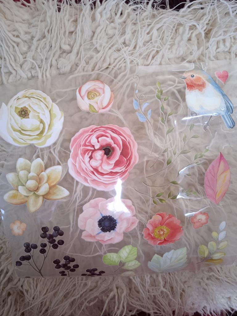 Получила наклейки на одежду. Спасибо, пришли без заломов и повреждений, лист был намотан на пенопластовый ролик, размер листа 24×24см. Высота большого цветочка примерно 6см. Клеятся очень просто, вырезаете выбранный рисунок, прикладываете к одежде, сверху тряпочку, и проглаживаете горячим утюгом. После снимаете тряпочку и оставшуюся пленку. В стирке ведет себя хорошо, не линяют и не рушатся, даже при стирке в машинке. Советую. Очень удобны для детских вещей, всегда можно либо украсить безликую вещицу , либо прикрыть красивой наклеечкой неотстирывающееся пятнышко.