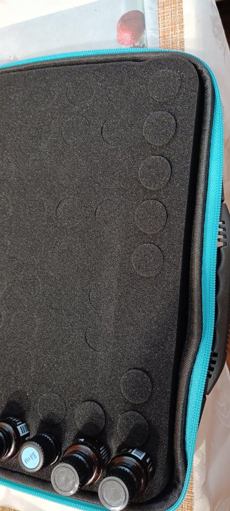 Сумку повело при транспортировке, и на крышке сильная мятина, не знаю разгладится ли. Масла 15 мл в высоту умещаются, в ширину в прорези приходится запихивать