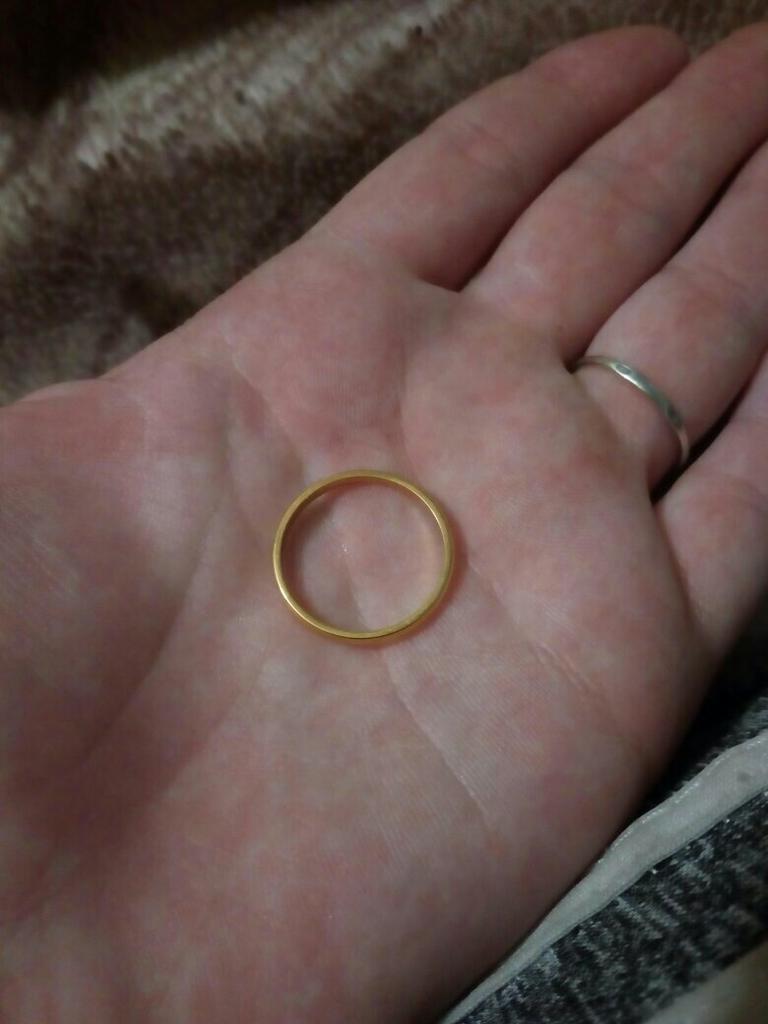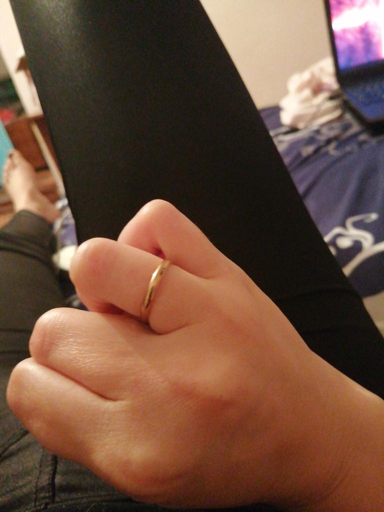 Получила колечко. Пришло очень быстро. На вид от золотого не отличить. Ширина шинки 2 мм. Это конечно тонковато , но у меня рука маленькая, так что самое то. Сделано очень качественно, гладкое без царапин, блестит. Смотрится аккуратно и нежно. Продавцу огромное спасибо! Как будет носиться, посмотрим. Если это действительно нержавеющая сталь, то будет всё в порядке. Дополняю отзыв. Ношу кольцо не снимая уже две недели. Делаю всё : и стираю, и посуду мою, и чистящими средствами пользуюсь без перчаток! Колечко как новенькое, без царапин, блестит. Я человек сомневающийся, поэтому специально так делала, чтобы проверить качество изделия. Всё супер. Заказывайте, не сомневайтесь. 👍