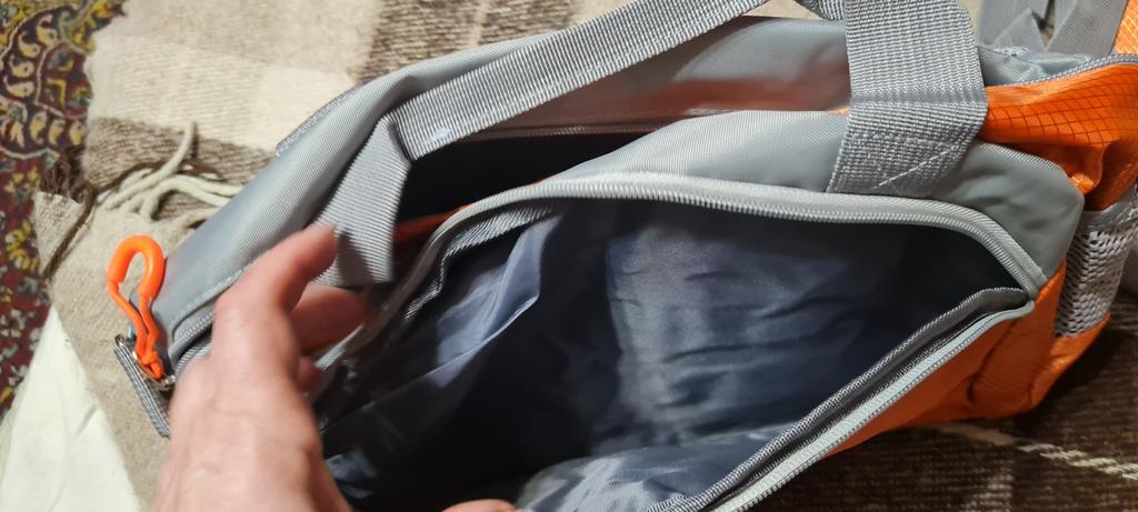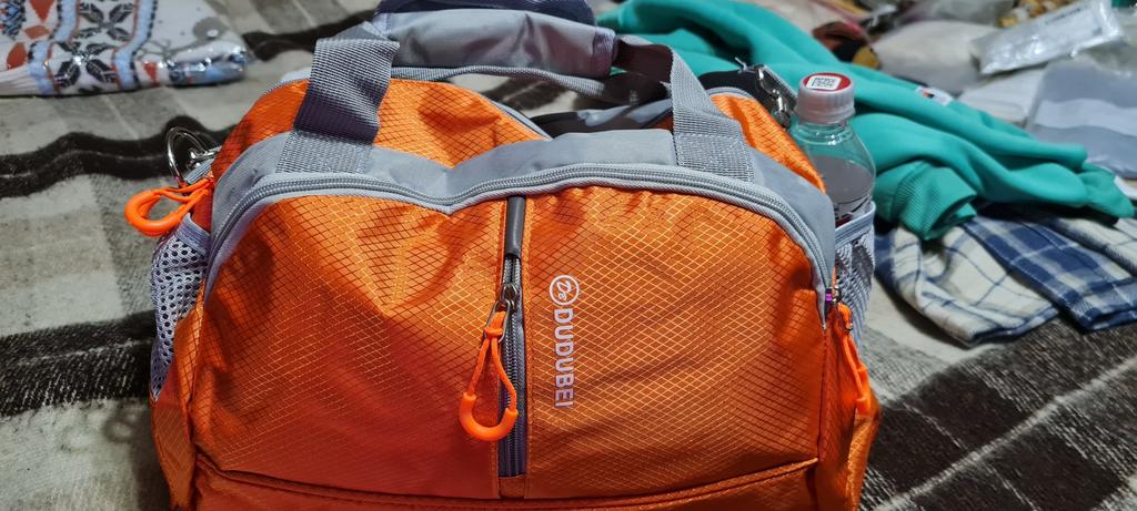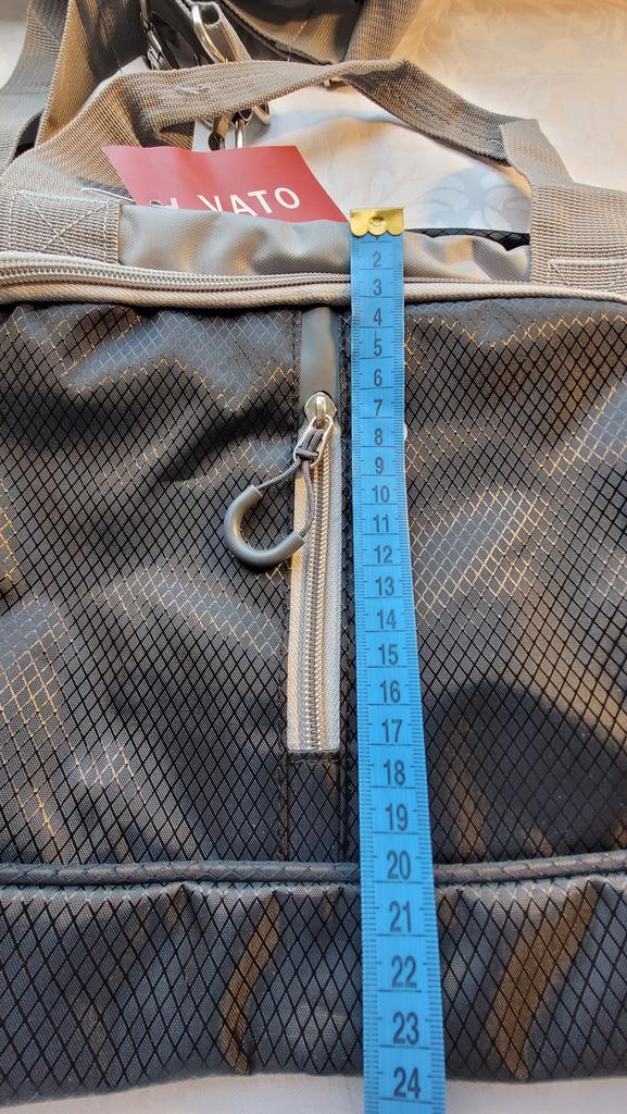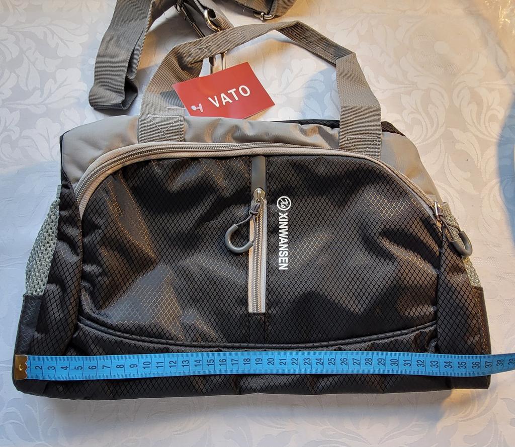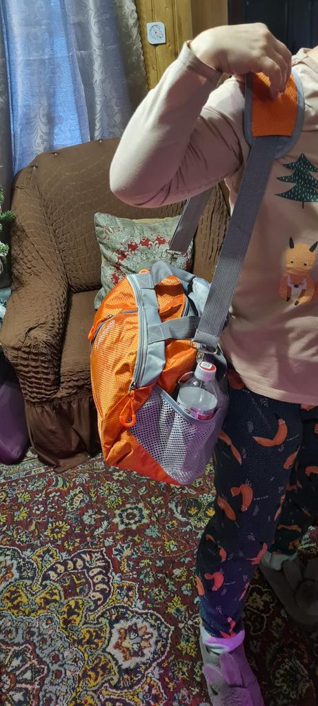 Когда распечатала сумку, то удивилась её не большим размерам. Но когда начала её заполнять, сумка оказалась достаточно вместительная. Спокойно поместилась спортивная обувь, трико, футболка, большое махровые полотенце, душевые принадлежности, две бутылочки в боковые кармашки и ещё что нибудь можно было положить, типа косметички, расчески и т.д. Качество исполнения отличное, пахла только новой вещью, слегка, специально нюхала🙃. Очень понравилась: и на фитнес удобно ходить и в небольшие поездки брать. Кстати, сзади сумки есть ремень, что бы надеть на ручку чемодана.