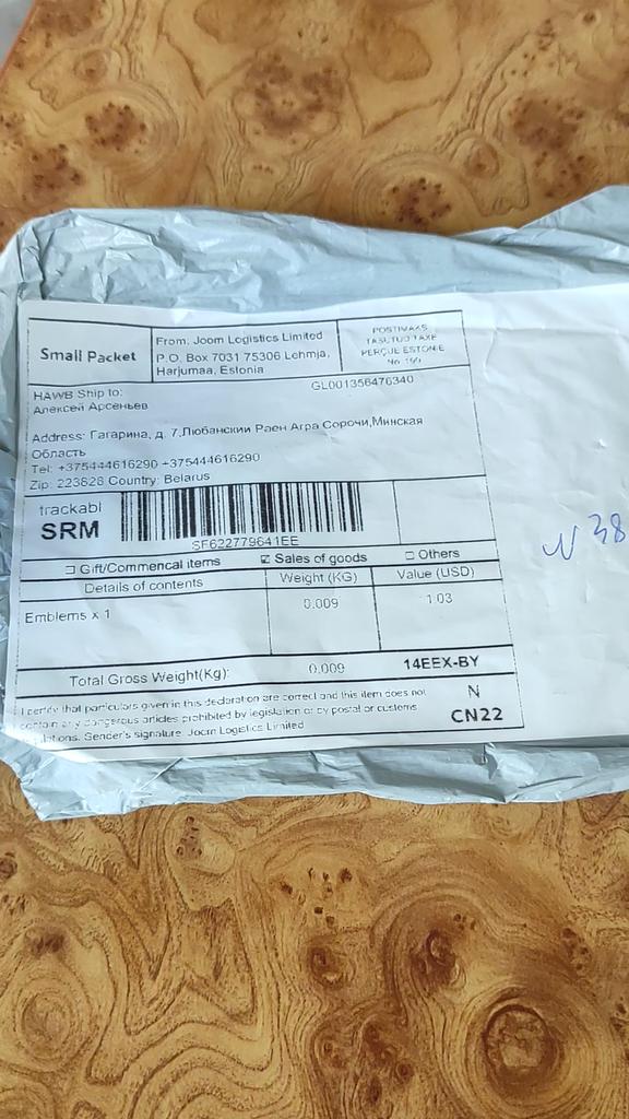 Заказал 01.02.18 трек отслеживался до 27.02.18 до границы России!Прибыл на почту 16.03.18 и бросили в почтовый ящик! Ну очень долго доставка в Москву! Два заказа положили в один! Хорошая прикольная и отличная вещь реально помогает! Продавца рекомендую!