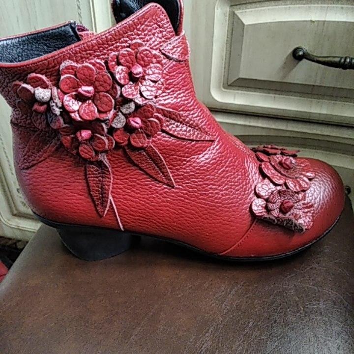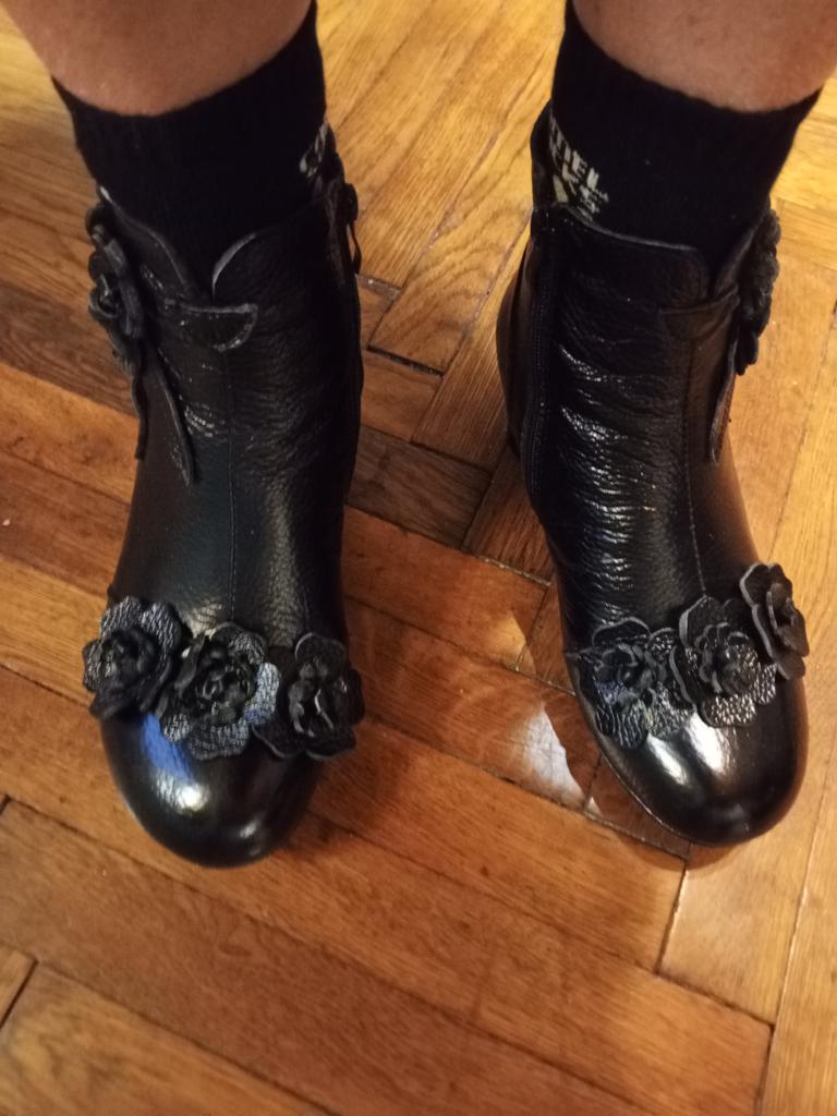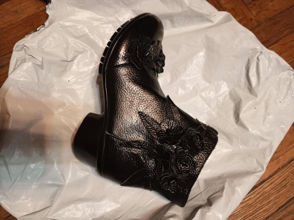 Спасибо, пришла посылка. Примерка показала, что по размеру стопы попала в 10-ку! На 36 размер заказала 39 размер. (24,0).Сапожки, в районе щиколодки плотнее, чем хотелось бы. Внутрь, по ощущениям в комфортном плане, хочется более мягкого расположения стопы, то бишь напрашивается какая-то мягкая стелечка! Качество хорошее, остаётся "подружиться" с новой вещью.Очень удобные ботинки. Пришли именно во время:осень холода, дожди. Ношу и радуюсь!!!! Каблучок необычной формы, небольшой. Рекомендую к приобретению! Очень-очень довольна! 🤗❤️ Если нога полная в щиколодке осторожнее с покупкой этой модели! 🙄 Запах химии сильный, вынесла на свежий воздух (на балкон). Запах долго не уходил, но теперь уже всё прекрасно! Благодарю, "Joom". 😉