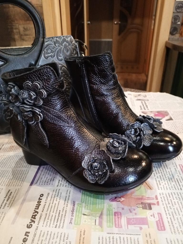 Ношу размер 40-41. Заказала 42. По размеру норм. Смотрятся красиво. Мягкие, кожа. Но шов давит чуть на мизинец. У кого косточка , тоже проблемно будет носить. Шов как раз на косточку приходится. На широкую ногу не пойдут. Продавец положил следки. Немного на правом коцик есть. Быстрая доставка, до Свердловской области меньше ,чем за месяц. Хочу добавить отзыв: одевала раз 6 один ,на одном ботинке облезла краска сзади, черный цвет проглядывает. Плохо окрашены.