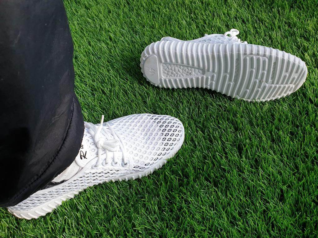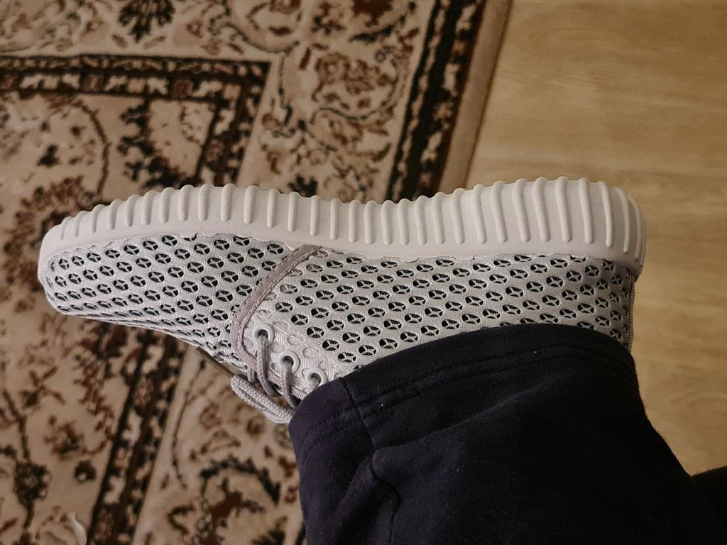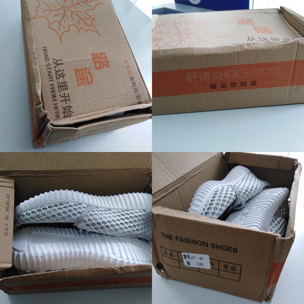 Не смотря на то, что коробка помята и порвана в хлам, кроссовки внутри оказались целыми, что косвенно говорит об их вандалоустойчивости. Сделаны аккуратно. Выглядят добротно. Достаточно высокая подошва. Материал - синтетическая сетка воздухопроницаемая, не эластичная. Задник укреплён лишь репсовой лентой. Размер 41 отлично сел на широкую ступню с высоким подъёмом русского 40го.