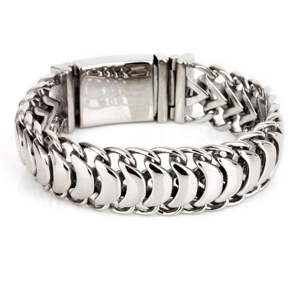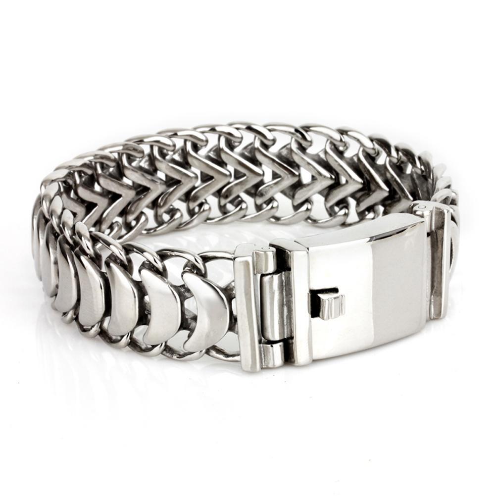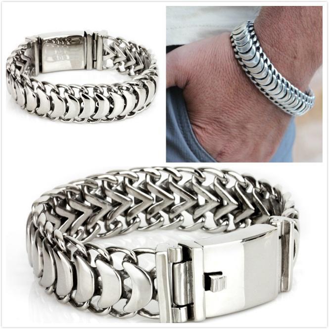 Мужской тяжелый браслет байкера из нержавеющей стали с широким дизайном звеньев цепи и полированной отделкой