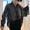 Мужская прозрачная рубашка, свободная мешковатая блестящая блузка с прозрачными рукавами реглан, клубные топы, праздничная одежда