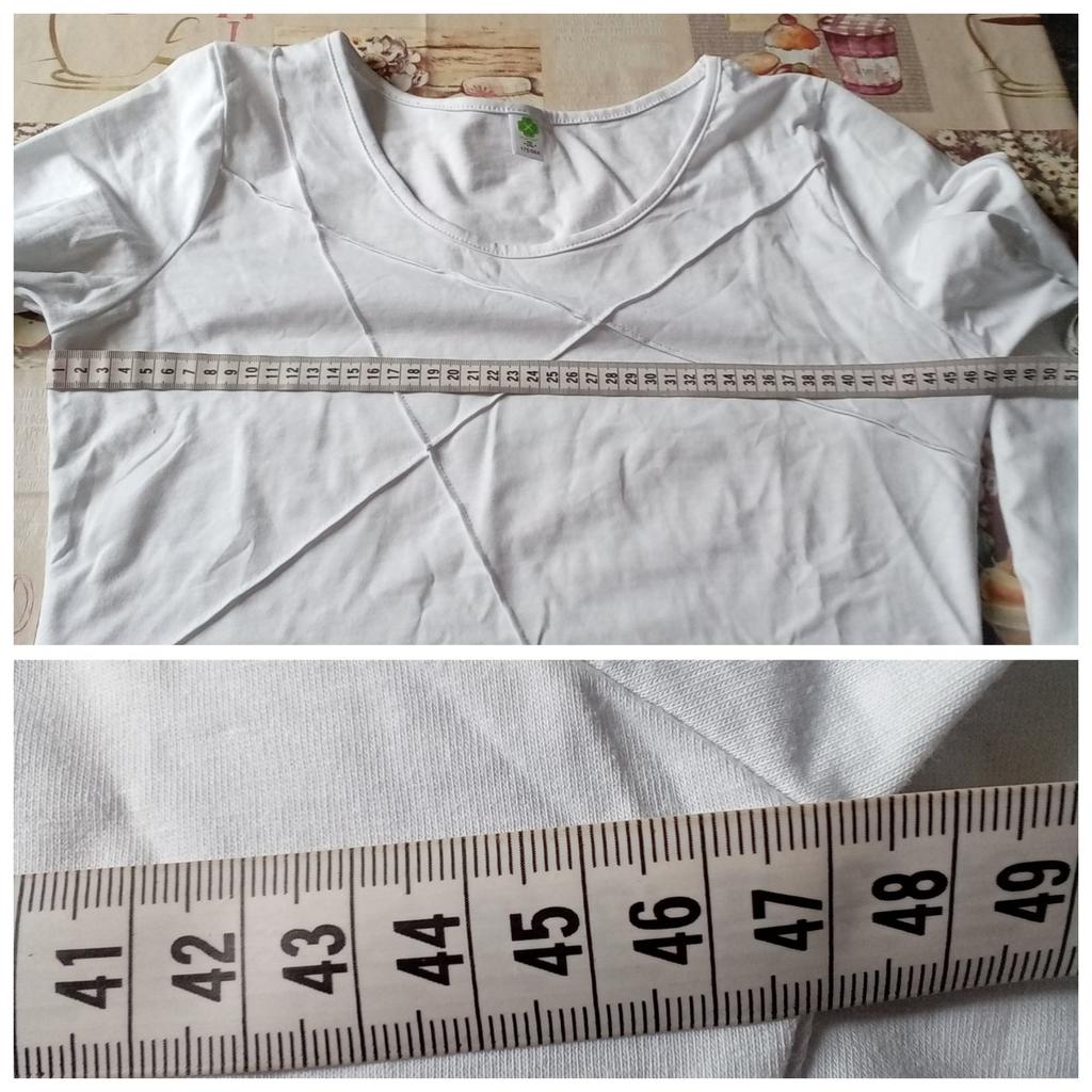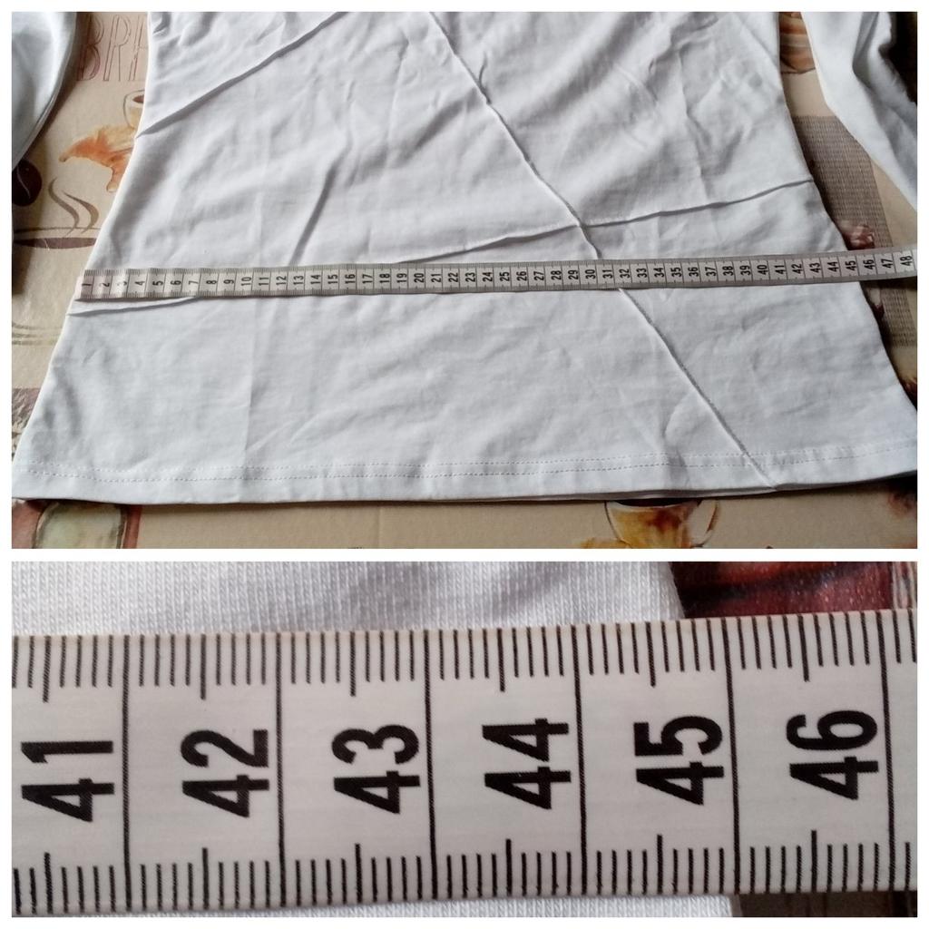 Дата отправления 21 февраля. Получила 24 марта.Базовый белый полувер или футболка с длинным рукавом (можно и так назвать) .Состав заявленный продавцом 95процентов хлопок и 5 спандекс. Трикотаж плотный,не просвечивает.Швы все качественные и запаха постороннего тоже нет. Вещ фабричная.Размерная таблица верная.Внешне полностью соответствует картинке. Рекомендую к покупке товар и продавца. Большое спасибо продавцу за качественный товар и быструю доставку.
