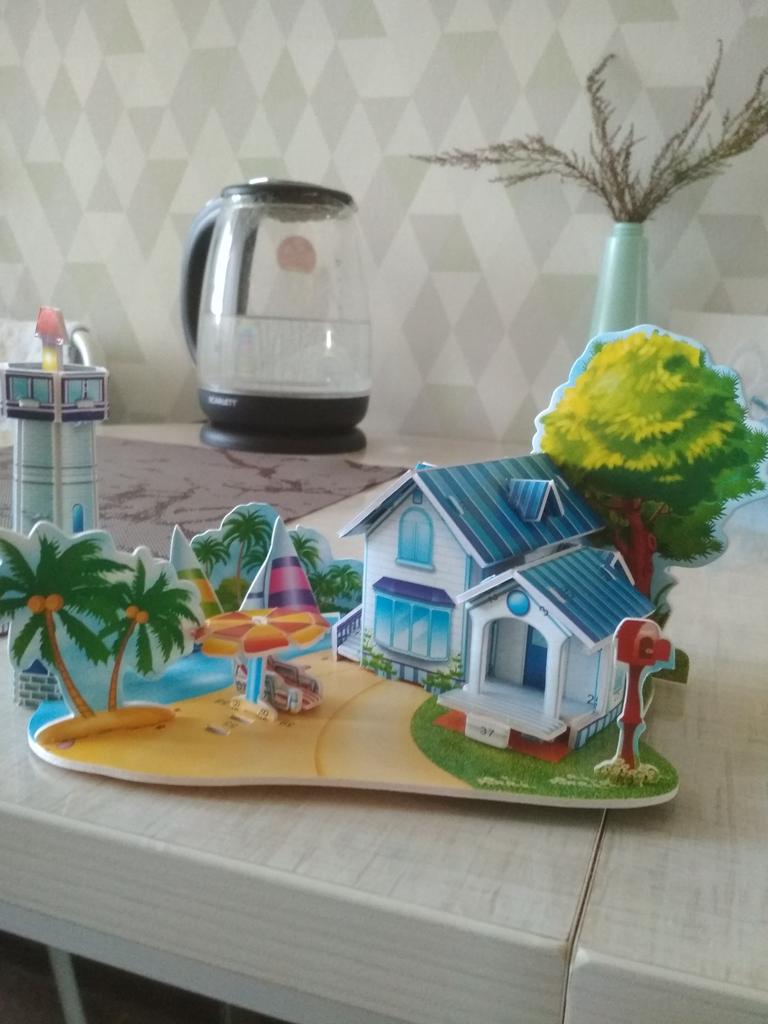 Взяла внучке, ей 2 годика. Собирала я, она помогала вынимать детальки, делала это с удовольствием, потом выколупывала лишнюю бумагу из мест соединений, их очень много, с ними играла, короче, это было ей очень интересно. Конечно, пока ей нравится снимать крышу с грибочка, отколупнуть чердачки, но игрушка живёт уже третий день, все прикрепляем на свое место, потихоньку изучаем, пополняем словарный запас. Правда, не нашла второй шезлонг и ещё одну детальку, но это уже не столь важно, главное, что ребенку интересно. За игрушку ставлю 5, спасибо!!!