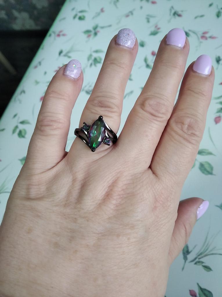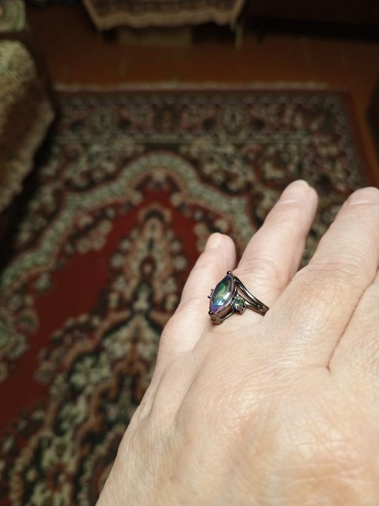 Красивое изящное колечко 💍 Размер 9 как раз, как заказывала❣️ Мне очень нравится👍 Переливаются грани очень красиво🔥 Теперь бы найти такие серёжки 😍 Может кто-нибудь подскажет 😊 🤗 Покрытие стирается до серебряного Цвета😔