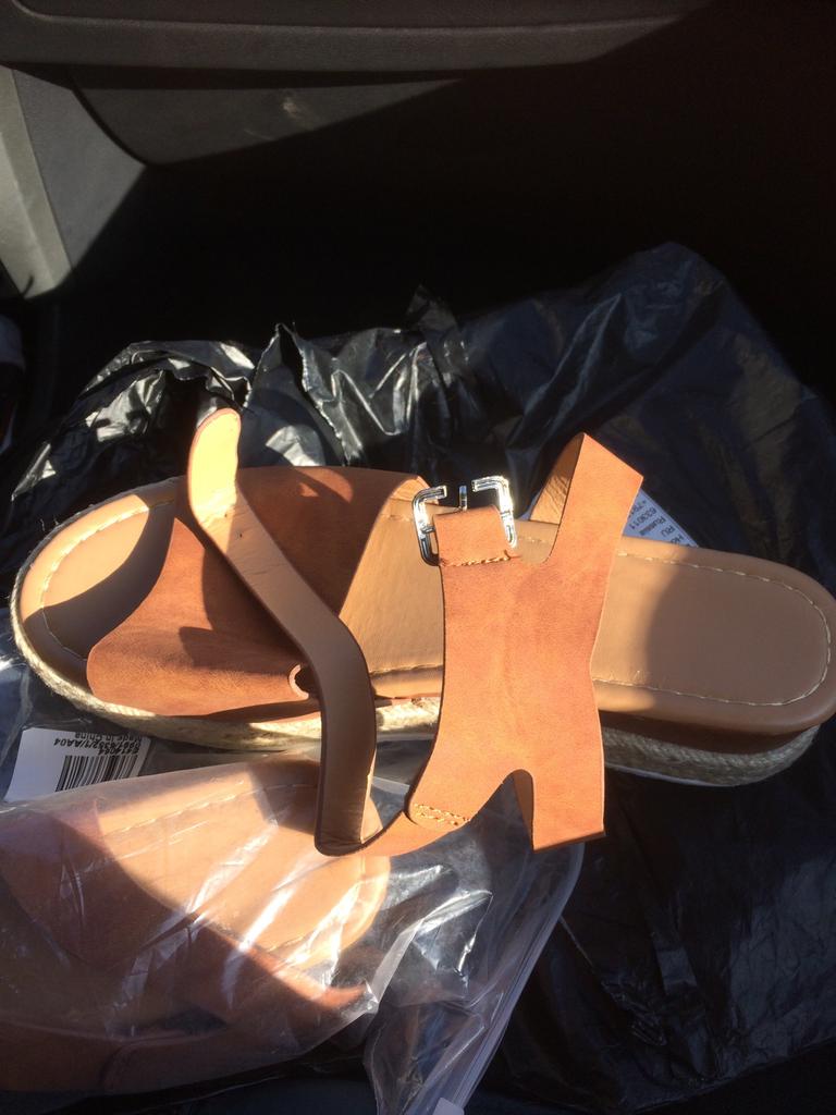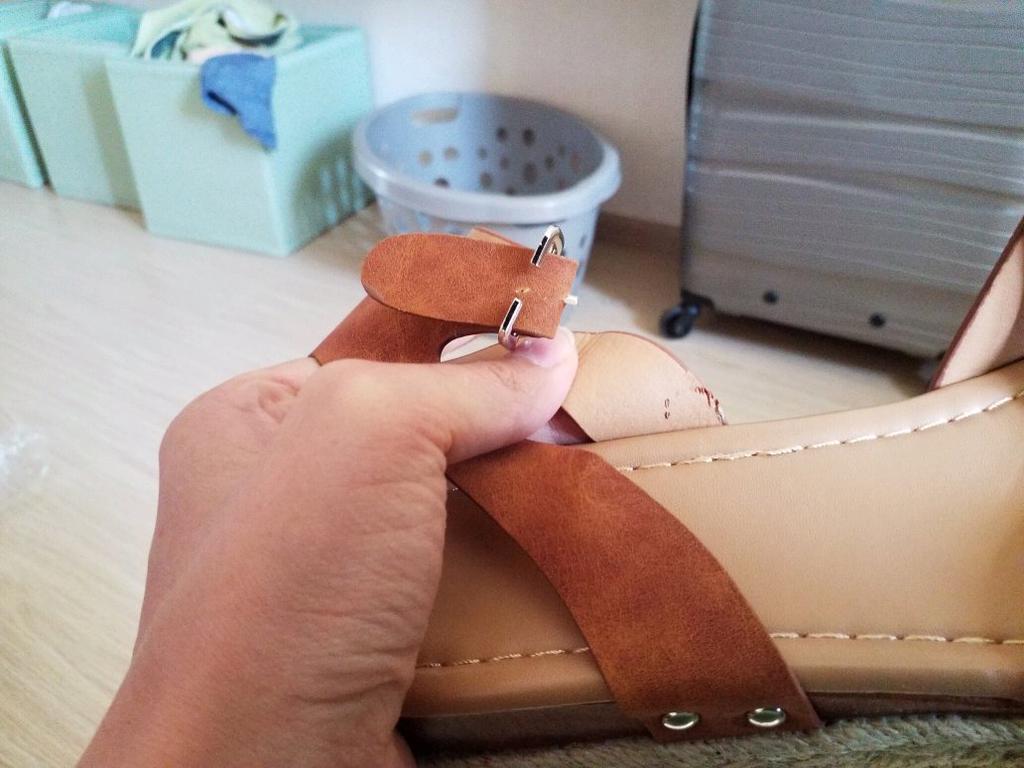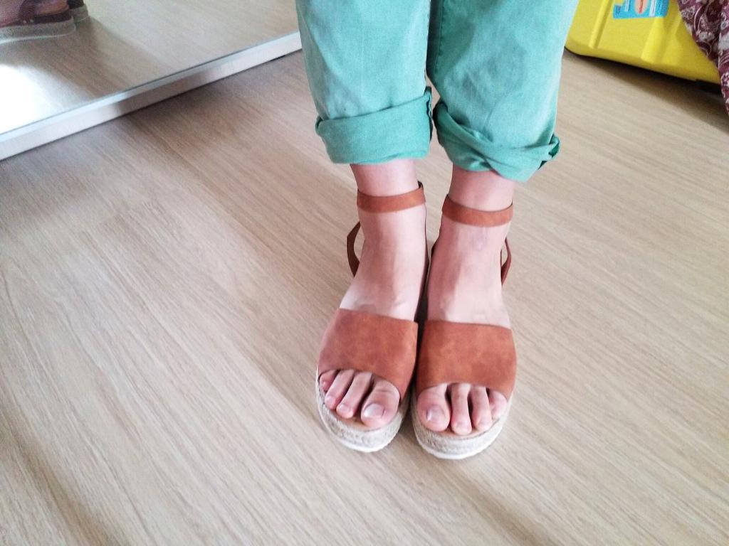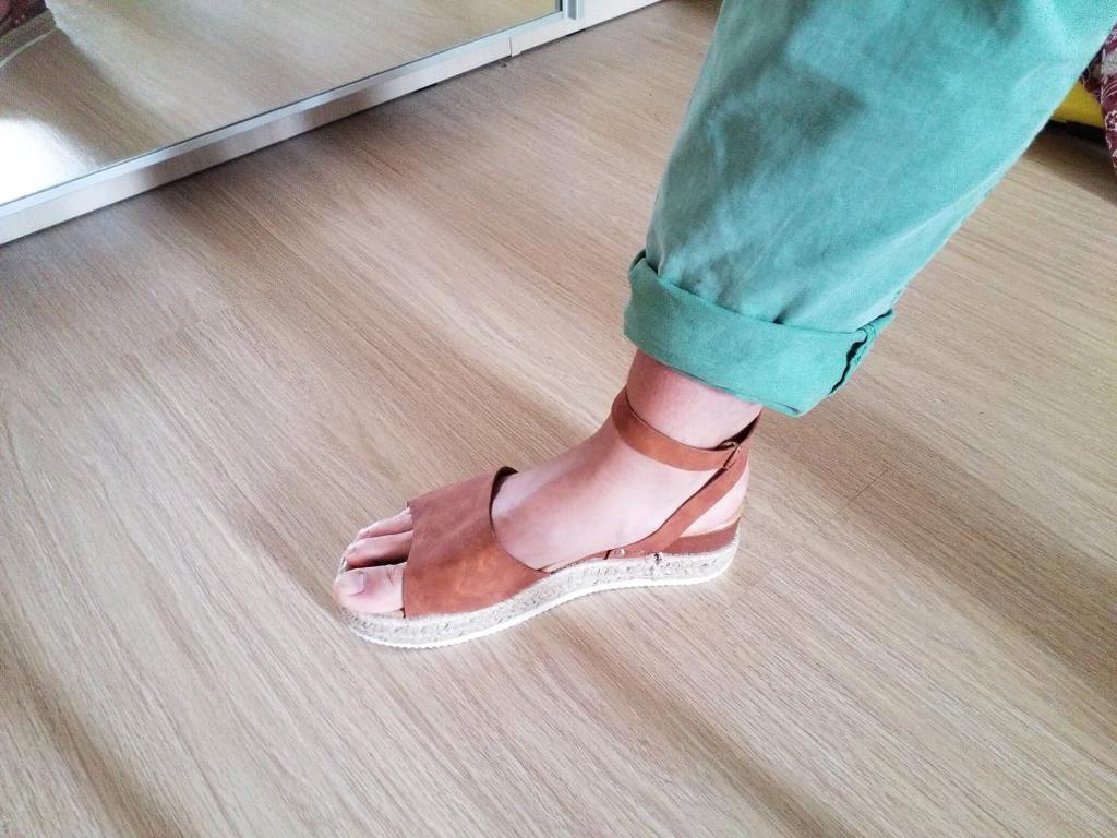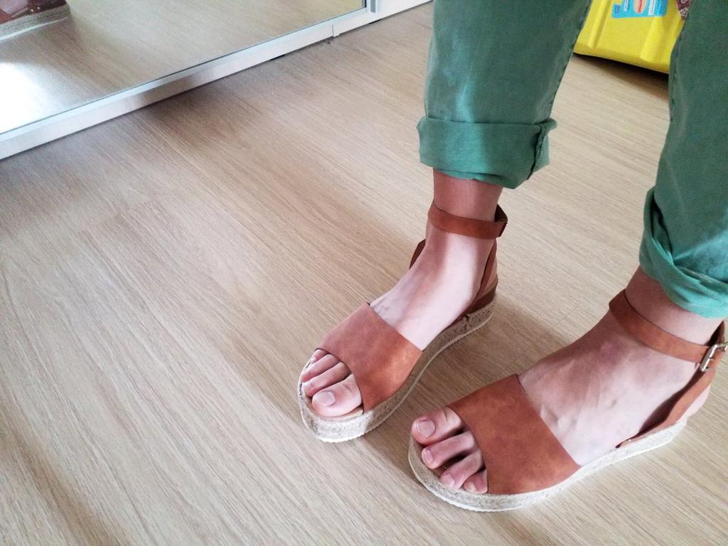 Ну вот! Взяла самый большой размер, какой был, в общем-то, осознавая все риски. Склеено не очень аккуратно, много где следы клея, лента состыкована совсем уж плохо, но это ладно. У меня с моим 42-43 не помещаются ни пятка, ни нососк)) еще с боковой лентой забавно: она длинная! когда идешь, босоножки шлепают, как будто ты в тапочках (на 4 фотографии видно, на сколько поднимается нога). Посмотрим, сколько они со мной проживут)
