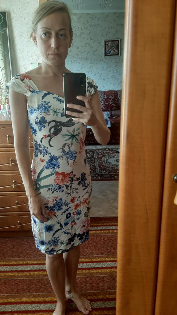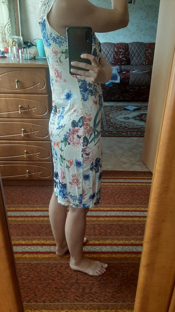 Вот и лето заканчивается, а платье только приползло ко мне в Красноярск... Ждала ровно три месяца, но это спасибо почте, оно по России два месяца гуляло! Упаковано в обычный почтовый пакет. Само платье разочаровало. Во-первых: расцветку ждала более нежную, а дождалась бабскую! (По дороге состарилось:) Во-вторых: размер. Брала на свой 40-42 самый маленький XS, но оно мешком болтается! Иногда просто S хорошо подходит, но это однозначно ушивать придется, да еще и чуток перешивать.... под мышками ужас какой-то висит... Ткань синтетика, но меня такая устраивает. В общем: из всех платьев с Joom это самое неудачное... Ожидала лучшего...