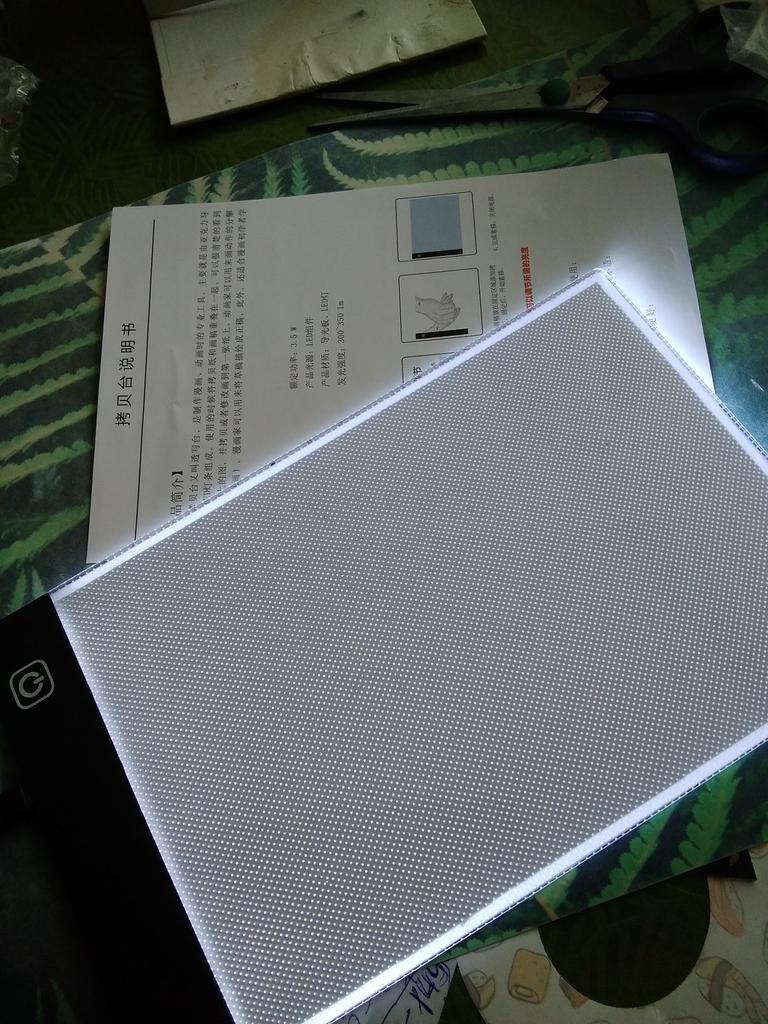 Пришло все в целости, упаковмно на совесть, без коробки! Хотя такой продукт не помешала бы коробка...😜🤔 Есть провод вполне длинный, инструкция, хотя знаниями китайского еще не обогатилась! Но думаю, справимся! Как работает-потом дополню. Скажу только, что ОЧЕНЬ легкий, почти не весомый, имеет защитную пленку, но к нему нужен чехол для защиты, если куда брать. Влючили легко, но пока не понятно как он просвечивает!? Три режима подсветки, на последнем фото -5 самый яркий. Видимо годится только для тонких листов. Надо пробовать!!!Потом дополним.... 🤭🤭Просвечивает плохо, пока результатом не довольна! Просмотрела инструктаж в интернете, у меня все ТУПО! Просвечивает очень слабо и если бумага -картинки плотная то вообще ни о чем😱🙈😿не видно ничего! Пока одни разочарования!!!......! Будем дерзать дальше. Копировать можно только с тонких листов с односторонним изображением, с книг не получается и с темной Крафт бумаги тоже- печалька!! Ожидания не оправдались. УВЫ😠🙊