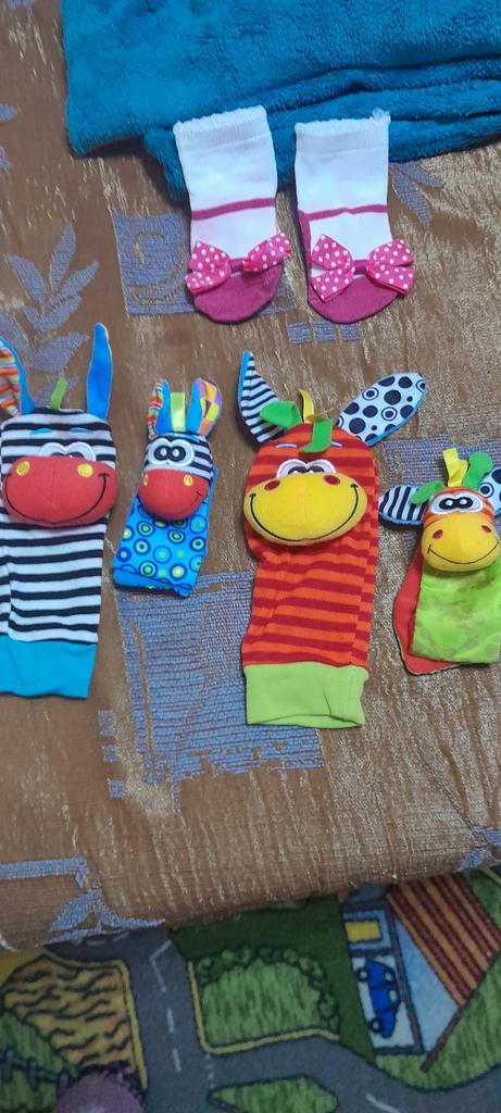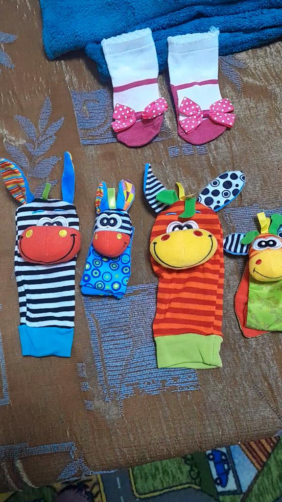 Заказом довольна. Носочки очень яркие. Обязательно привлекут взгляд малыша. Без запаха. А ушки шуршат и гремят.