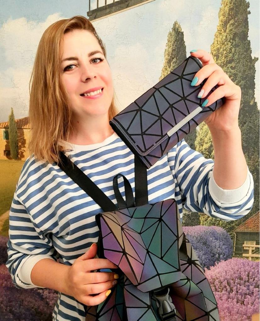 Еще один обалденный кошелек в стиле Бао-бао для подруги) Как вы уже поняли данный кошелек заказала я для подруги, которая после того, как увидела мой, прям очень захотела себе подобный) Мне импонируют геометрические рисунки и переливы. Это фишка таких вещей. Тут можно найти и кошельки и рюкзаки и косметички. Сам кошелек неплохого качества. Да, это совершенно не кожа, и даже хорошим кожзамом не пахнет) Но сделано довольно качественно. В подарок шла резинка для волос. Рекомендую.