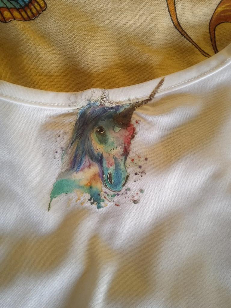 Наклеечка с единорогом - мечта ребенка. Украсилим футболочку - поделимся результатом. Спасибо. Все отлично.