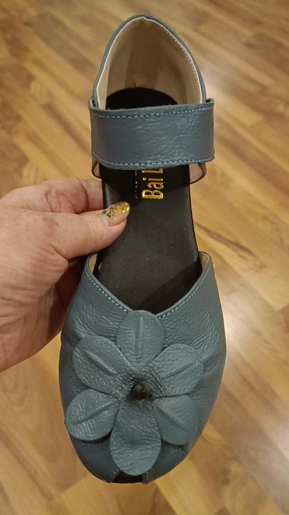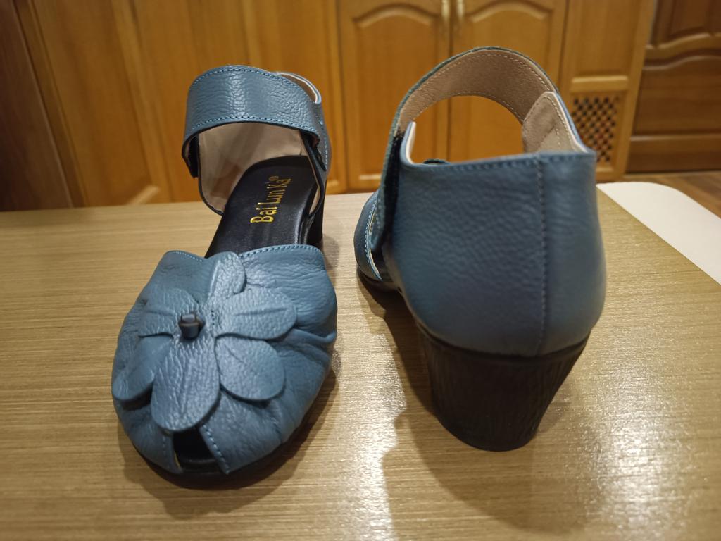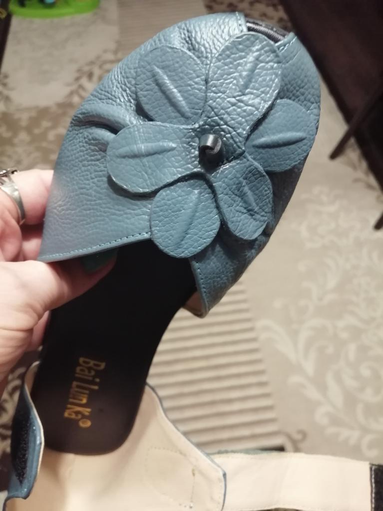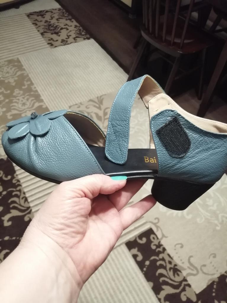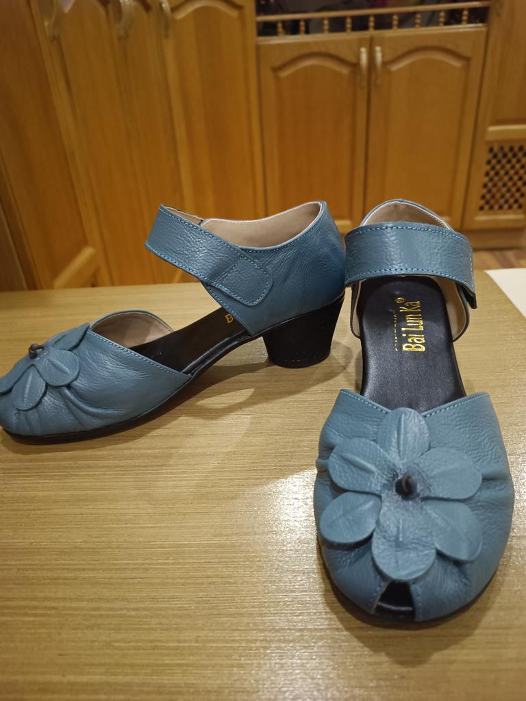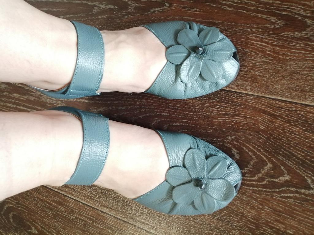 Очень хорошие,качественно пошитые босоножки из кожи(спилок)!!! К сожалению, закончились, но очень часто пополняются, поэтому оставляю подробный обзор. Моя стопа 24,5 см. По таблице продавца 39 размер. Взяла по таблице в размер. Все подошло!!! --Маркировка на подошве есть --Застёжка липучка крепкая --Пошиты без выпирающего клея и ниток --Лепестки цветка прочно приклеены. --Пяточка выполнена как положено держит вашу пятку --При распаковке пахли, но за ночь все выветрилось --Каблучок очень устойчивый, 4 см --Подошва не тонкая, надеюсь мелкие камушки будут не сильно ощутимы --По ламинату не скользят, следов не оставляют. Осталась очень довольна