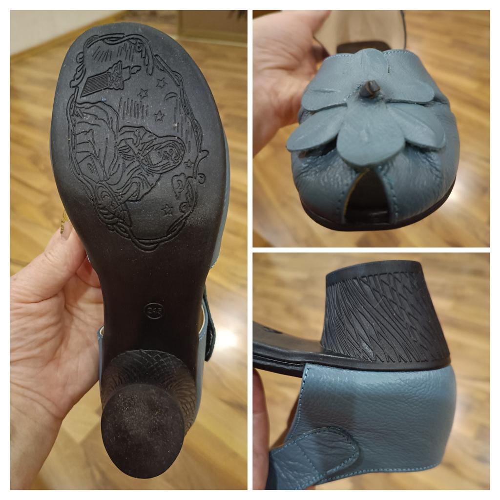 Романтические босоножки с цветочками N2 👡🌺 И они прекрасны! 💙💙💙💙💙 Проверены временем!💯💯💯 Номер 1 носила прошлым летом, чёрного цвета. Они и сейчас в отличном состоянии, лишь слегка разносились и стерлась надпись на подошве. Босоножки - удобнее не придумать! Кожа мягкая, не натирает ногу (в обоих случаях натуральная). Ремешок на липучке, держится плотно. Невысокий устойчивый каблук (резиновый кажется). Идеально подойдёт любительницам ходить пешком. Качество на высоте, судя по чёрным босоножкам, которые на порвались и не расклеились за прошлое лето, хотя мне и по лужам приходилось в них шлепать, и ходить пешком на большие расстояния. На последнем фото - мои черненькие!😍 Брака тоже в обоих случаях не нашла. Размер 40 подошёл на российский 39 (длина ступни 25 см - всё как по таблице продавца). Цвет моя камера искажает. Он не такой яркий голубой, а пыльно-голубовато-бирюзовый, как на промфото. Девочки, кому нравится такой стиль - берите, не пожалеете! 👍👍👍🔥🔥🔥🔥