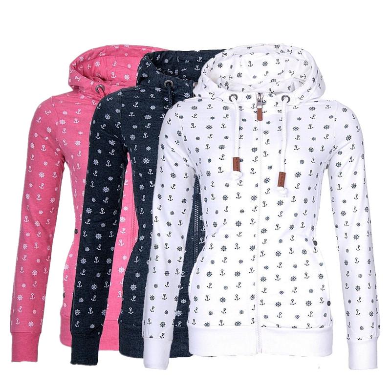 Женская флисовая толстовка с капюшоном, негабаритный морской якорь с принтом, свитер на молнии, джемпер, повседневная толстовка, топы