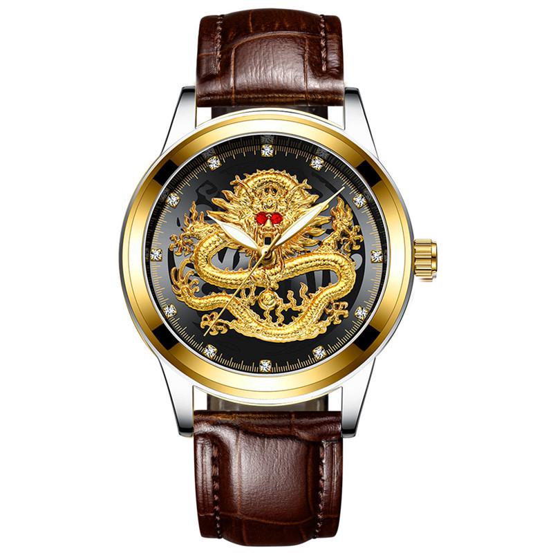 Модные повседневные мужские водонепроницаемые деловые кварцевые часы, роскошные брендовые часы со стразами, красные глаза, дракон, Relojes