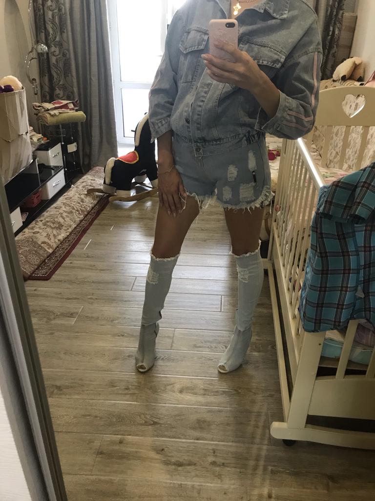 Сапоги прекрасные.. НО!!!! Положили темно синий цвет вместо небесно голубого((( Сказать что я расстроена - ничего не сказать!!!! А так, смотрятся красиво, но на моих длинных ногах даже колено не до конца прикрывают, идеально будут сидеть на невысоких девушках...
