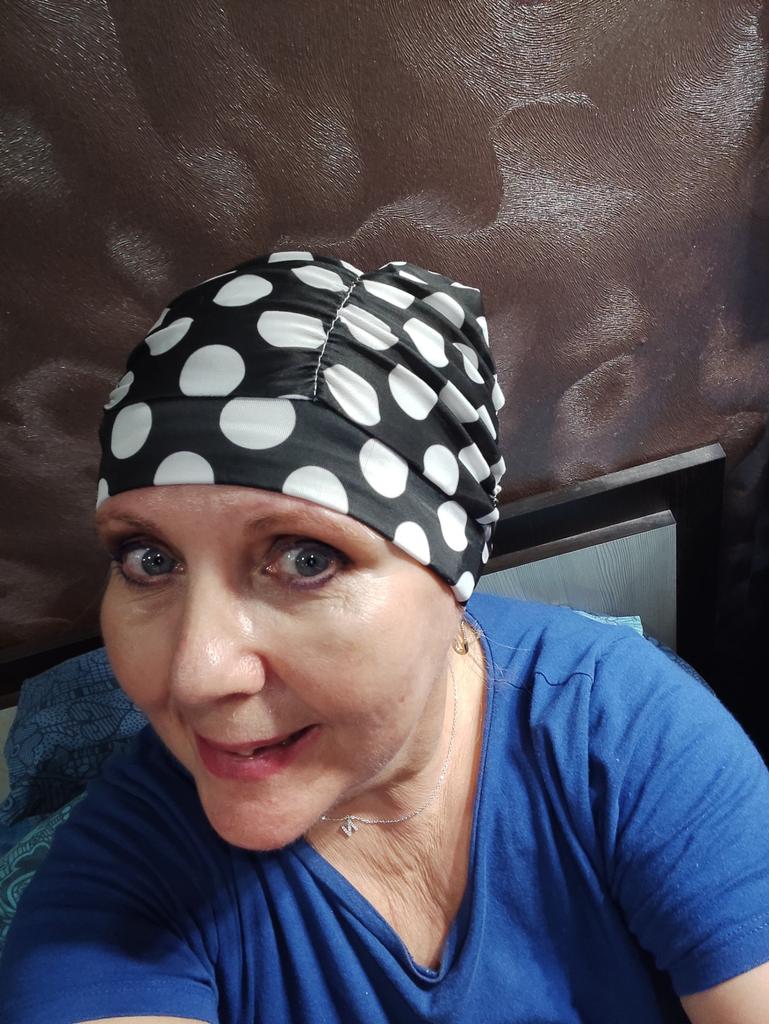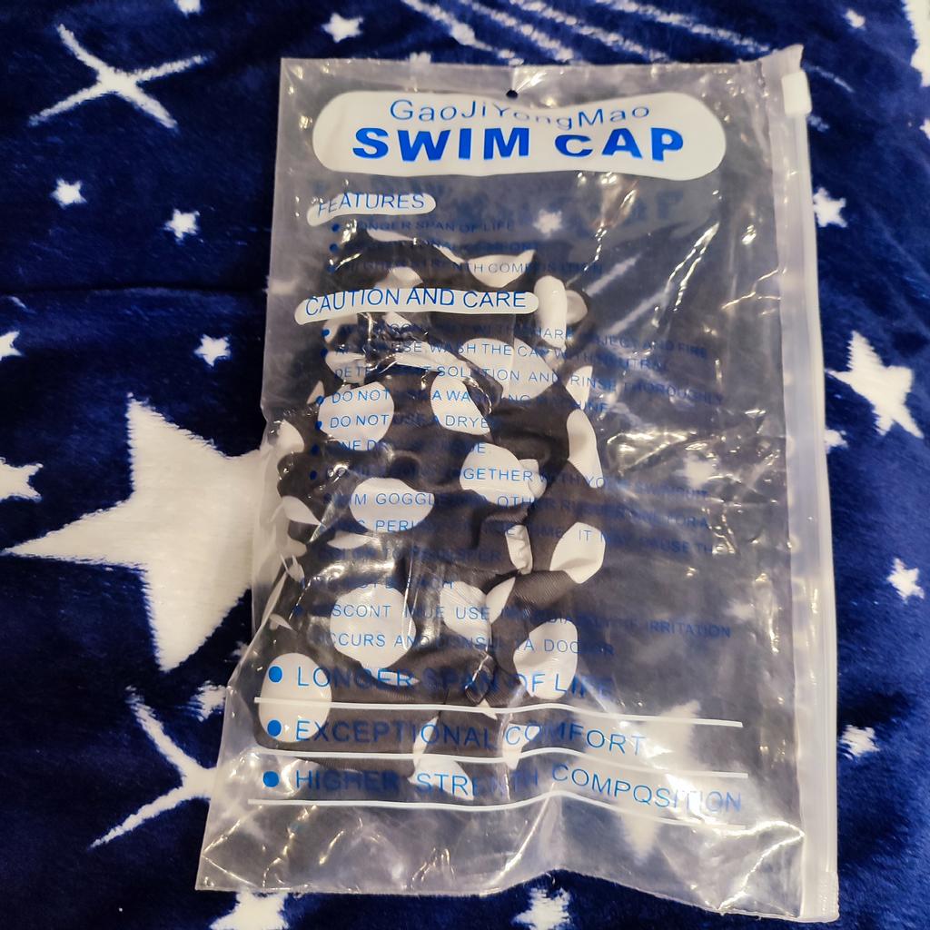 Шёлковое плавательная шапочка для бассейна она сделана очень интересно у неё есть такая небольшая сборочка потом ткань сама очень интересная ну и расцветка конечно чёрная в горошек мне как раз есть купальник чёрный в горошек Я думаю к нему эта шапочка очень подойдёт