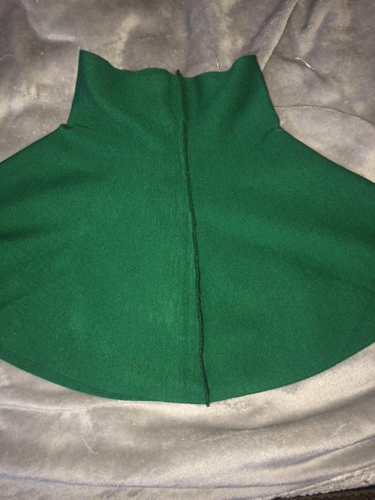 Цвет идеален, не ядовитый зеленый а приятный темный. Текстиль хороший трикотаж, ложится хорошо если правильно поставить резинку на талию. Но: Рост мой 172, талия 61, бедра 98. На мой рост юбка просто под попой, очень очень короткая. Если спустить то цже резинка на бедрах и не красиво. Так что юбка не для высоких))