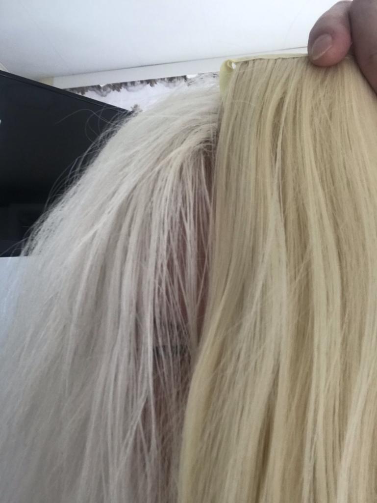 Это просто кошмар, а не хвост! Почему продавцы обманывают? Три раза везло, продавцы высылали то, что я заказывала, а вот три раза - совершенно не в тему! Я заказывала самый белый хвост, опять пришёл желтый, как лимон! Вот высылаю белый и тот который сегодня получила! Небо и земля, хотя на целлофане номер написан, какой заказывала, но положили в пакетик явно не тот хвост! Вот сравните фото: цвет белый у хвостика, который мне идеально подходит и сейчас пришёл желтого оттенка, который вообще мне не подходит! Джум вернул потраченные деньги! Ещё раз спасибо огромное!