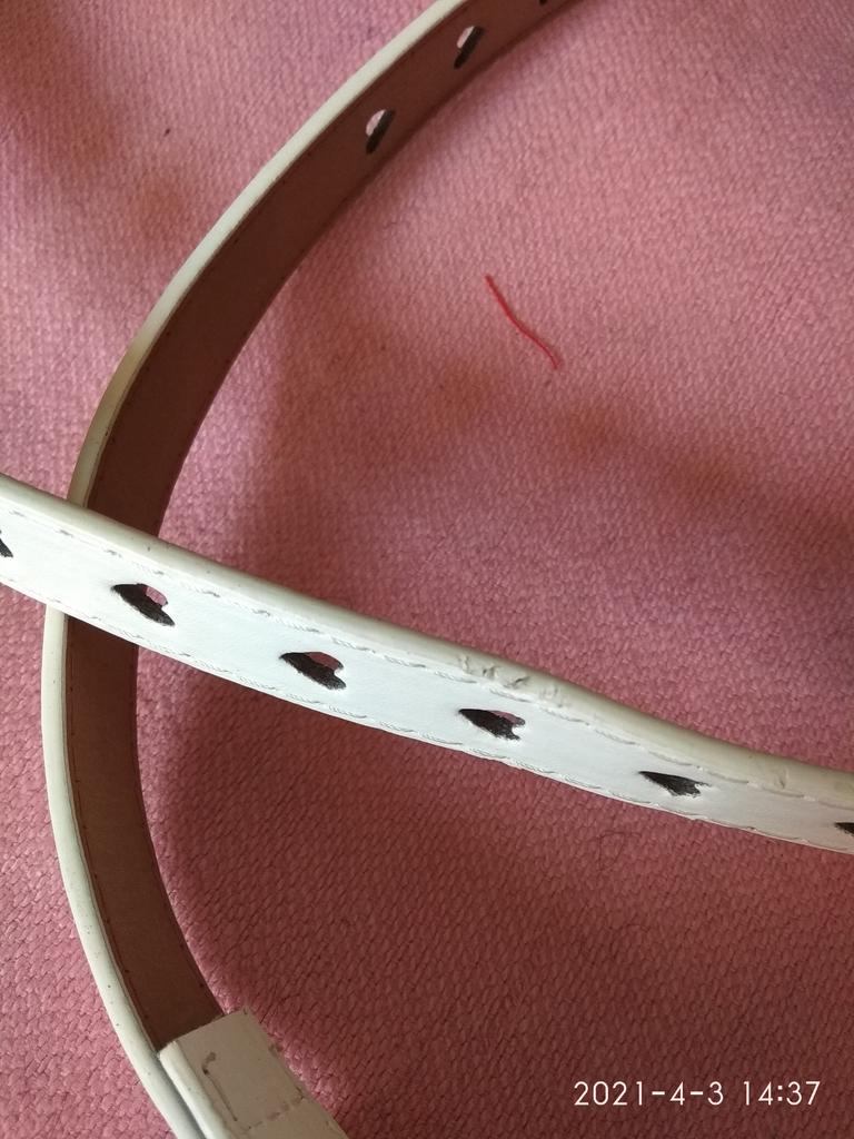 Ремень пришёл отличный, есть неприятный запах резины (на такой продукции это норма), идеально подходит для девушек с тонкой талией, ведь не нужно будет делать дополнительных дырок) Минус: бляха от ремня острая для самого ремня, после фотки я сняла и обнаружила след от бляхи - он порвал дермантин. Нужно будет аккуратно им пользоваться, чтоб прожил тот дольше)
