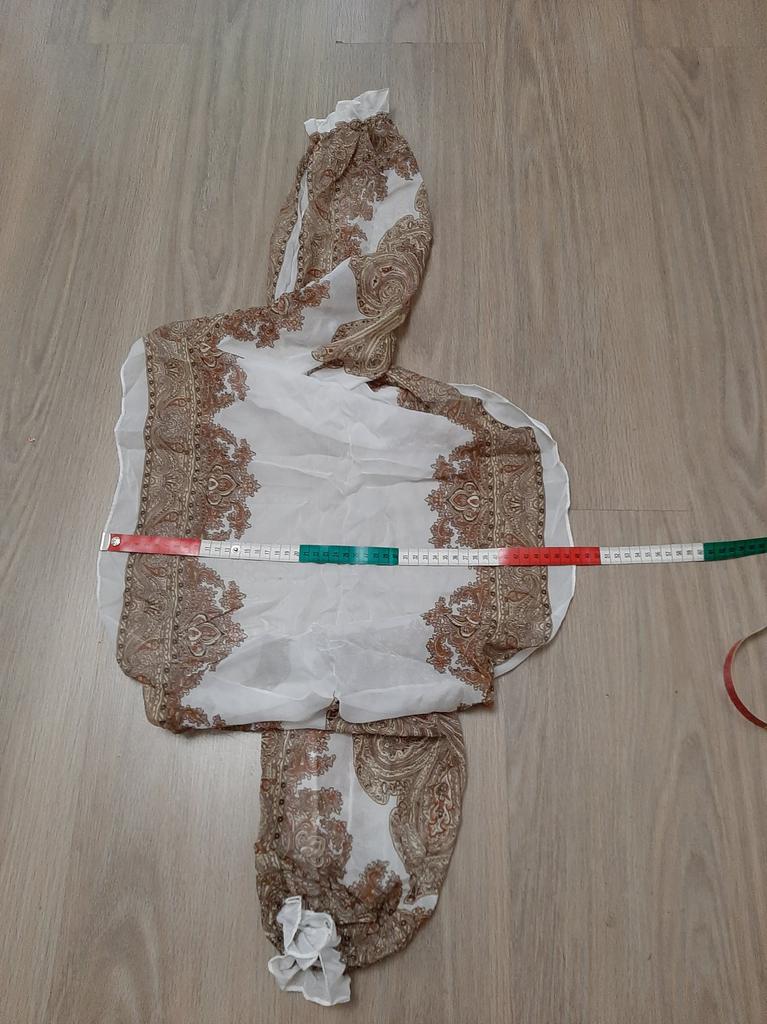 Описанию соответствует, но никак не ожидала, что это просто кусок шифона сложенный вдвое, а по краям пришиты резинки. Симпатично смотрится, принт красивый. Удивительно как в Китае умеют из ничего сделать эксклюзивную вещь.