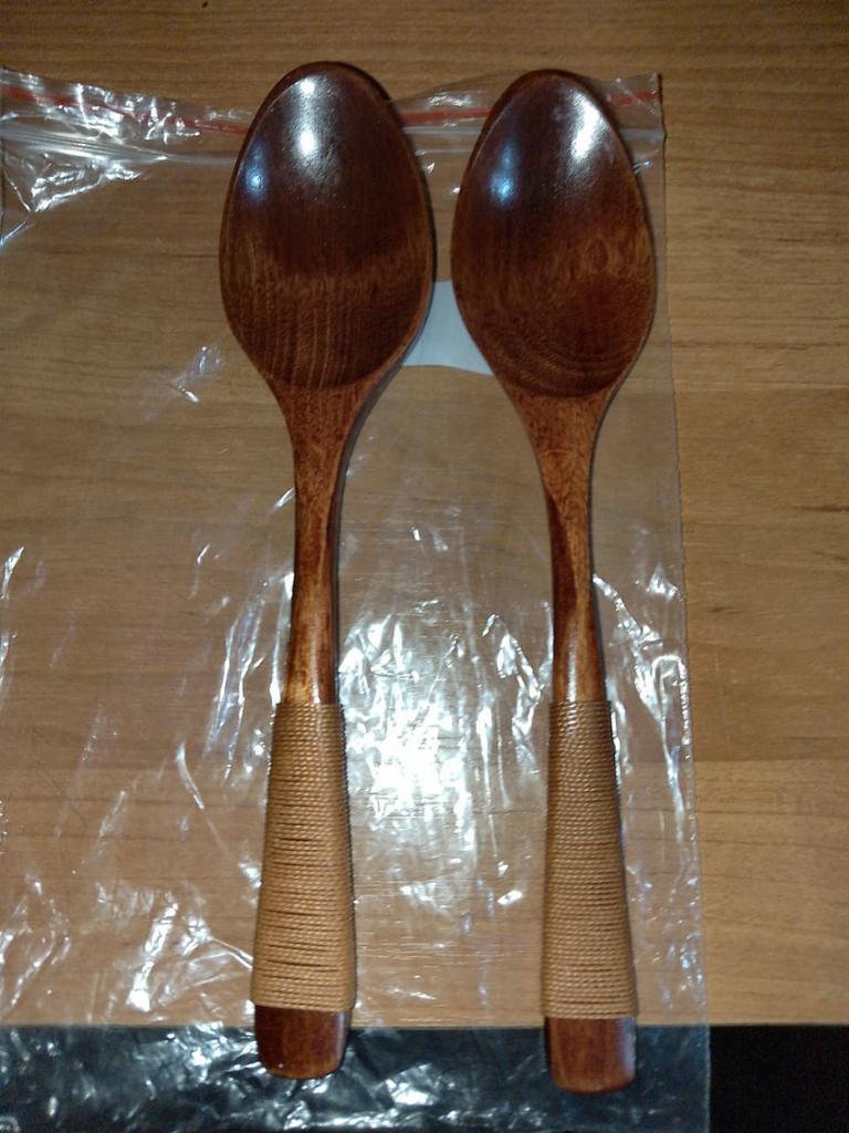 Ложки целые, не поцарапаны, примерно такие ждал. За 200 целковых две обошлись пойдут для экзотики. Кашу там поесть или супчик не горячий. А может насыпать чего. Вообщем пригодятся. Только не стоит кажется с металлическими смешивать раз облезает обмотка ниток. Восток дело древнее. Изучать еще долго. Зачет товару, магазину и продавцу.