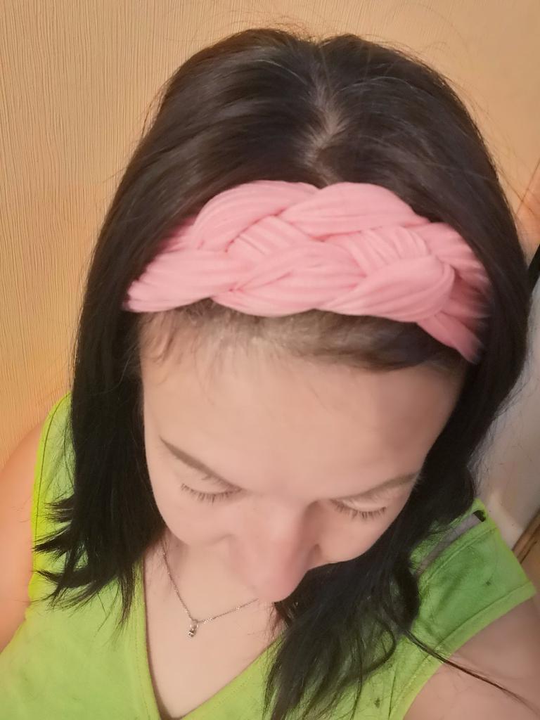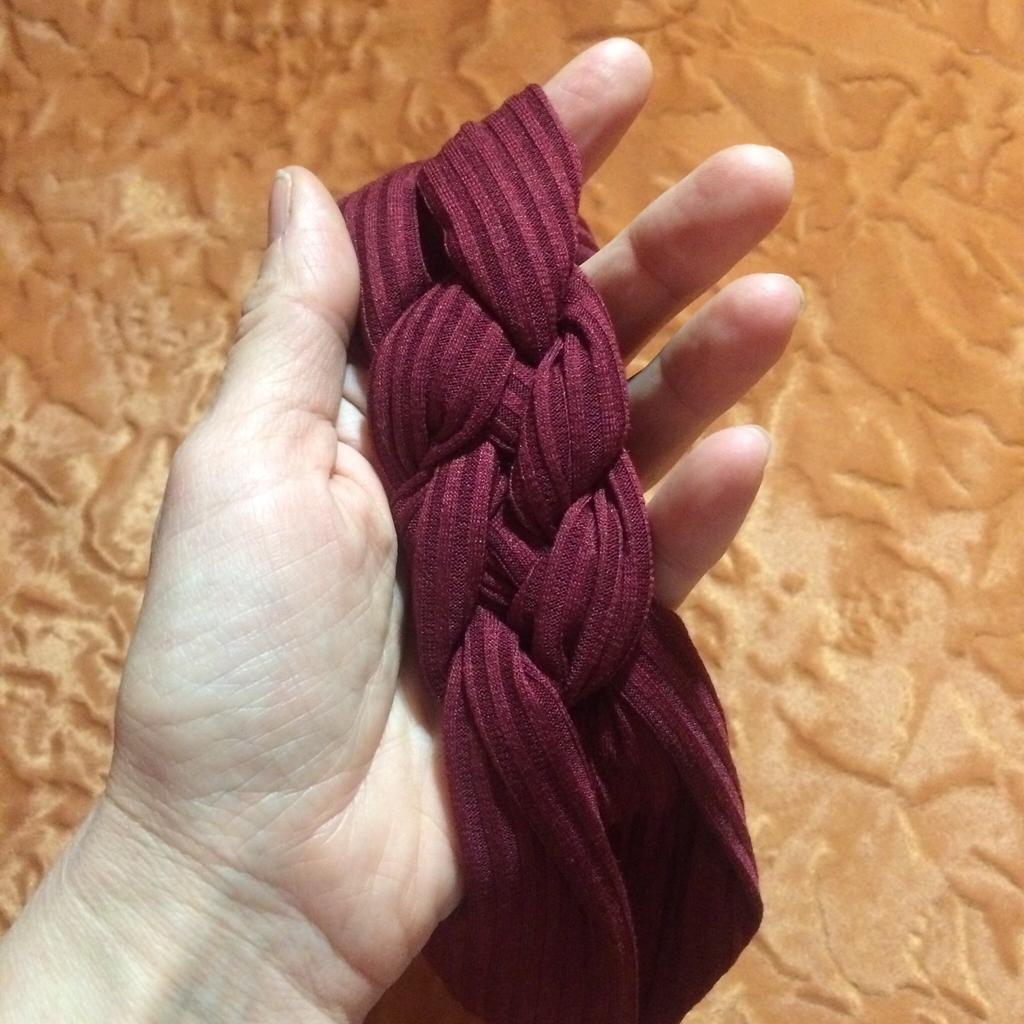 Повязка-ободок. Ткань довольно приятная (хотя я по фото представляла себе её иначе - более бархатистой), мягкая, эластичная (тоненький трикотаж). Передняя часть повязки сплетена косичкой. В заднюю вставлена резинка. Резинка довольно эластичная. Смотрится повязка интересно. Держится и держит волосы хорошо (немного скользит за счёт гладкости ткани) сидит на голове довольно комфортно. Рекомендую! Заказала с купоном на скидку за 172,9 руб. Информацию о доставке в почтовое отделение получила через 45 дней после даты заказа (долго). Пришли 16! заказов в одном пакете (удобно). За время доставки товар не пострадал. Удачных всем покупок!