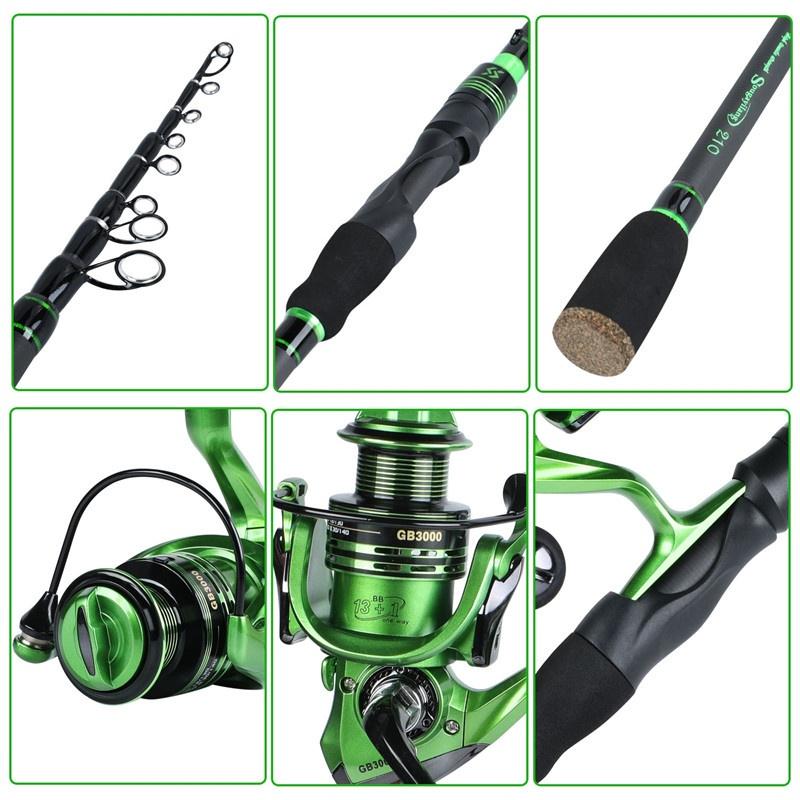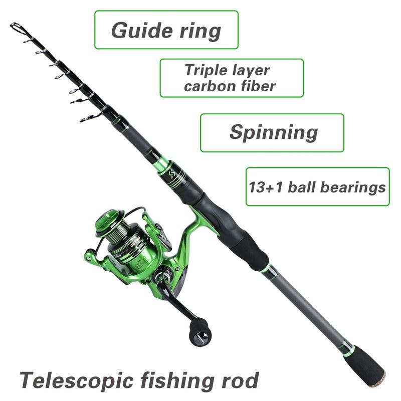 Комбинированные катушки для удочек с телескопической карбоновой удочкой и рыболовной катушкой для ловли пресноводного окуня