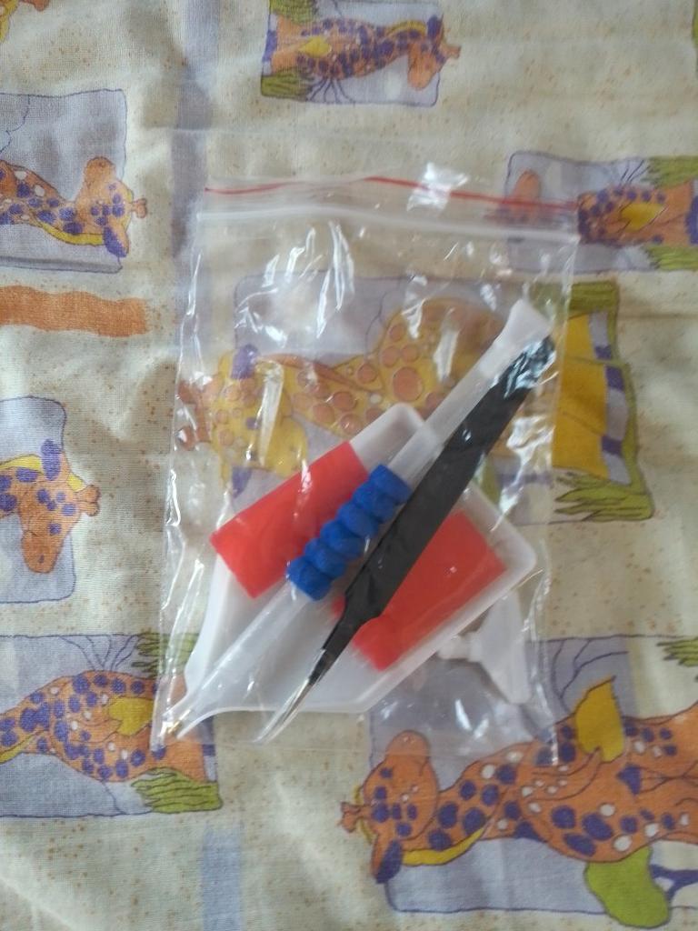 Шла мозаика долго заказала12.06 получила 02.08. Упакована очень хорошо в пакет и специальную упаковку(видно на фото), сама картина намотана на валик. В комплекте идёт стилус, лоточек для алмазиков, клей для стилуса и пинцет. Алмазики сразу упакованы в зип-пакетики(что очень удобно). Когда соберу, дополню отзыв.